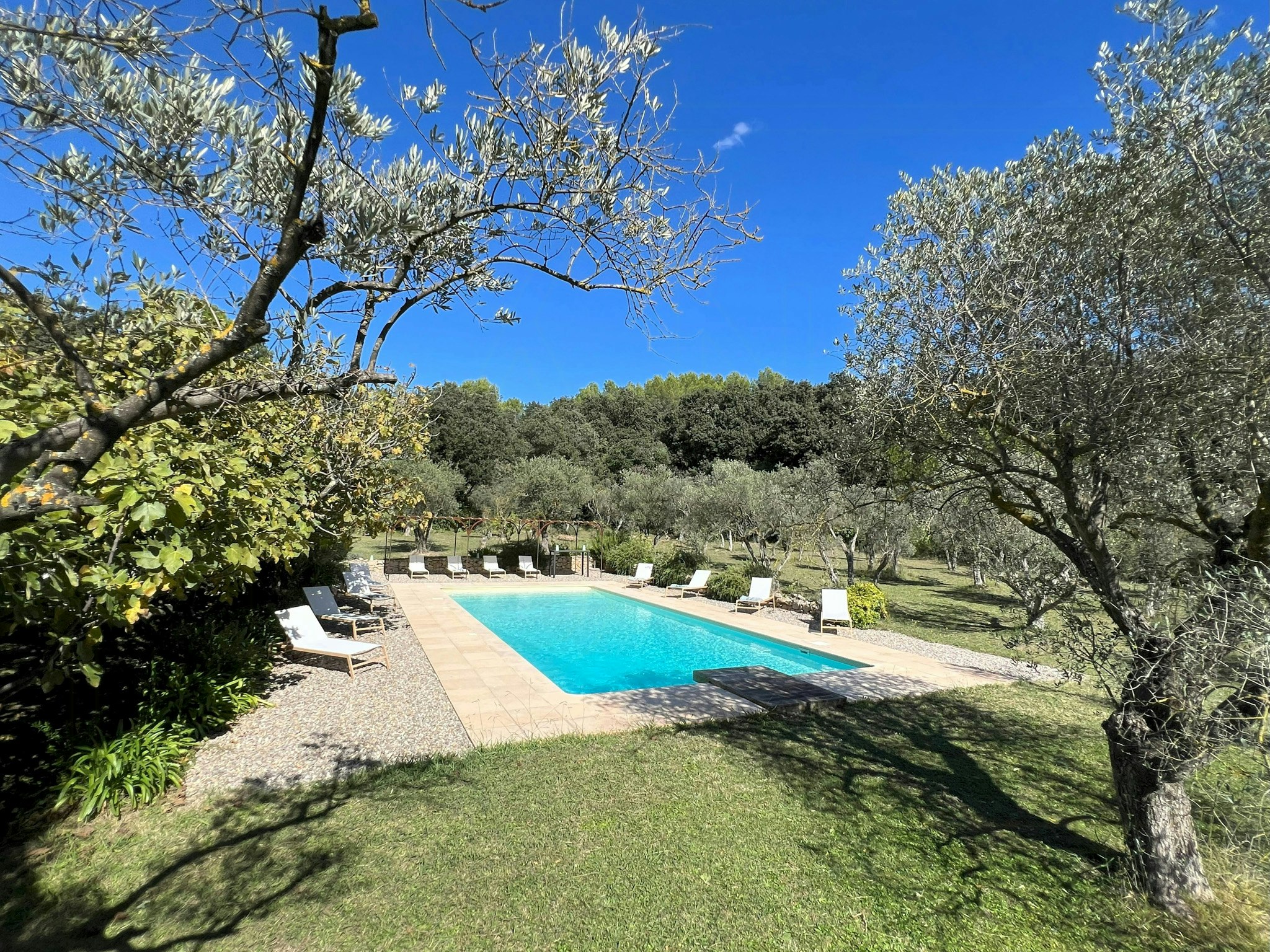Nyd 1,3 hektar grund med 200 oliventræer og en opvarmet swimmingpool med udsigt til Montagnette