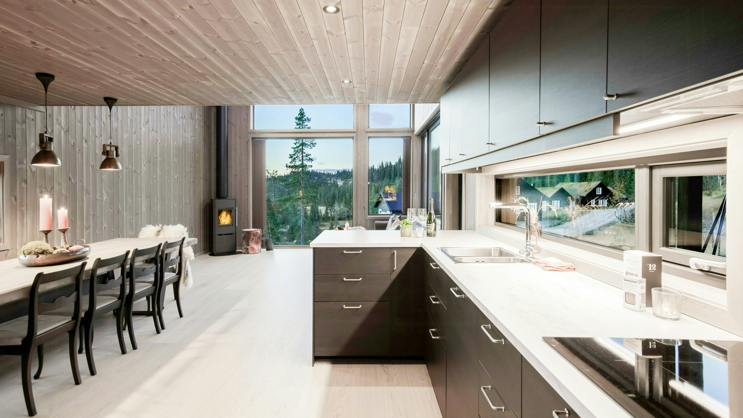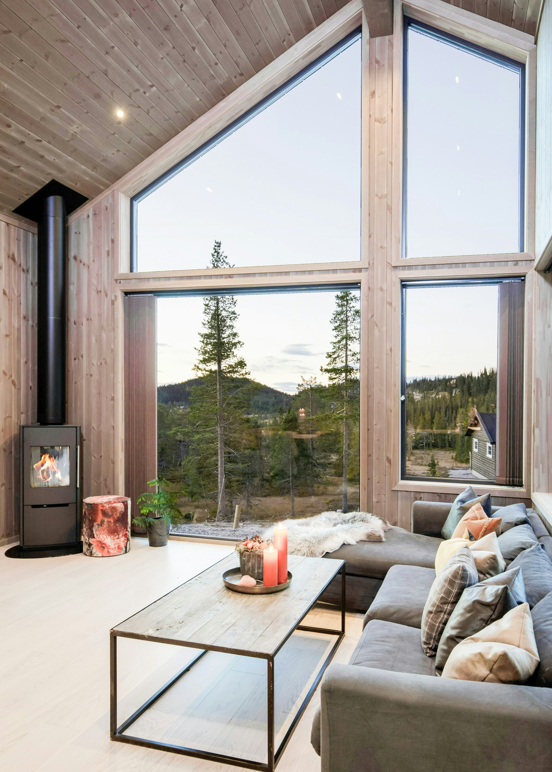 Nyd panoramaudsigten fra de store vinduer i stuen
