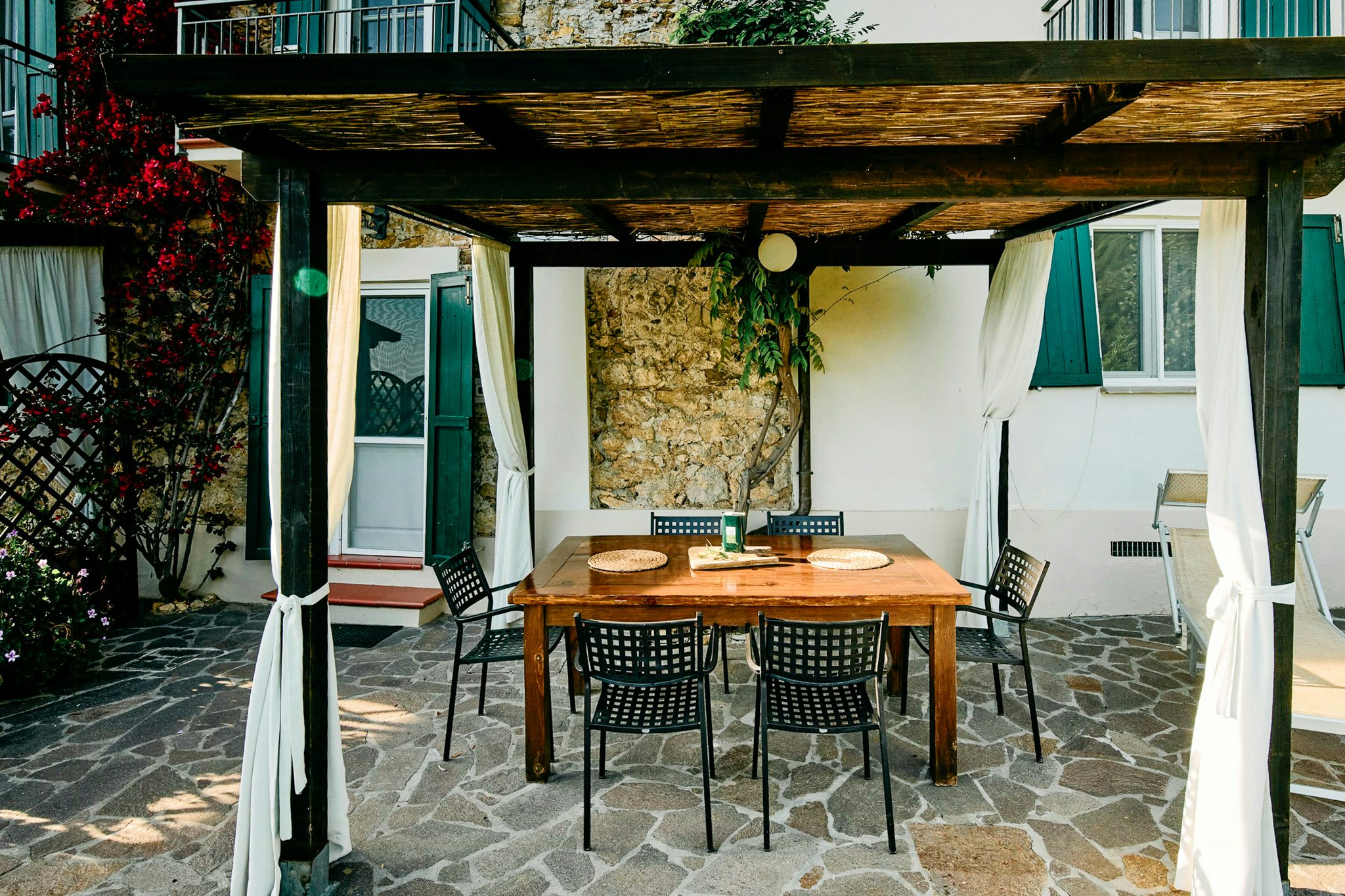 Indretningsarkitekt Emanuela Vicario har farvekoordineret hvert rum og tilføjet sine karakteristiske vægmalerier til soveværelserne. Den lokale håndværker Roberto Pelegrini har håndlavet køkkenet og udendørsbordene, mens marmoroverfladerne er skåret og formet af dygtige håndværkere fra regionen.