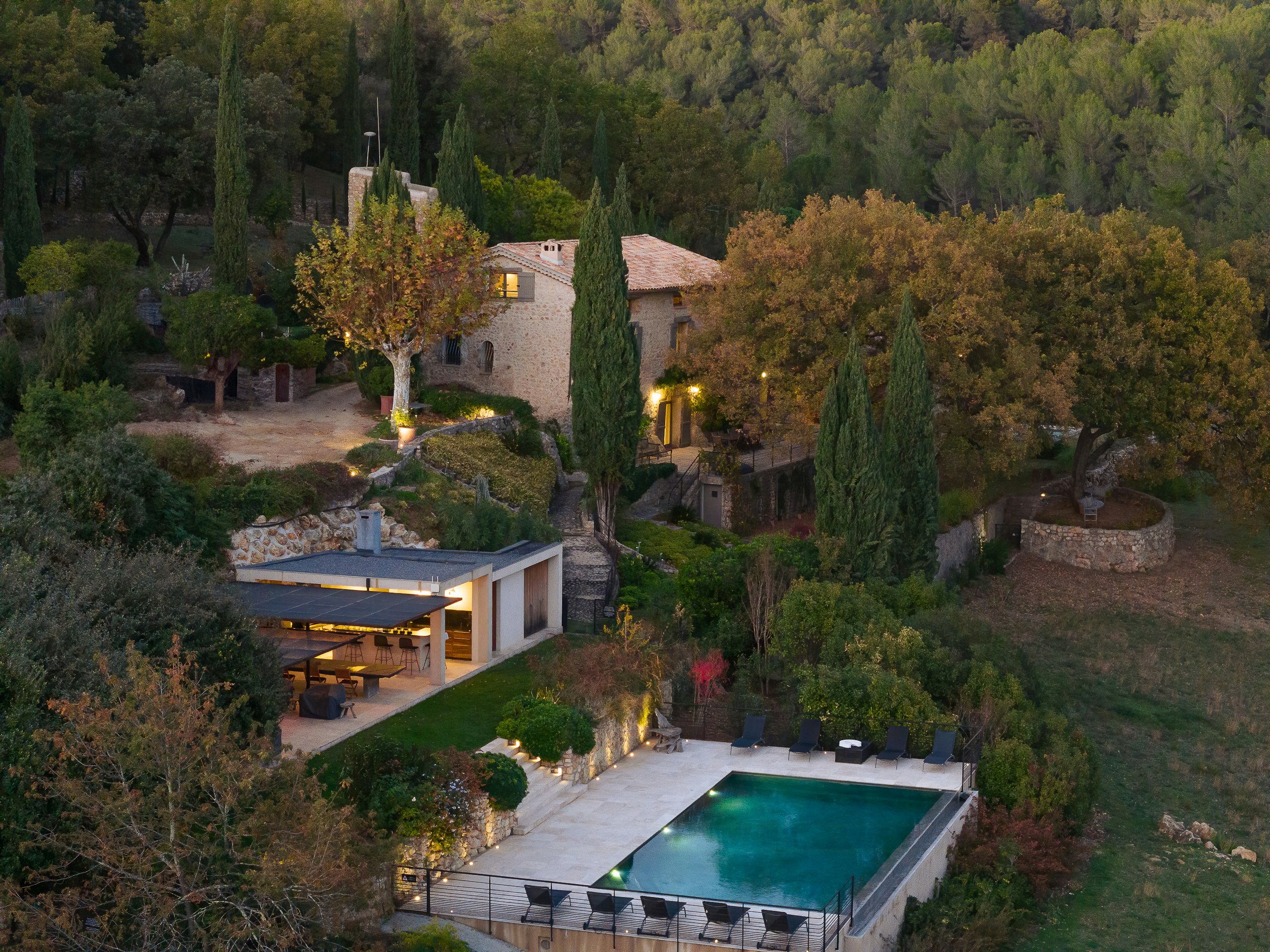 En ejendom på 100 hektar med helikopterlandingsplads i Provence