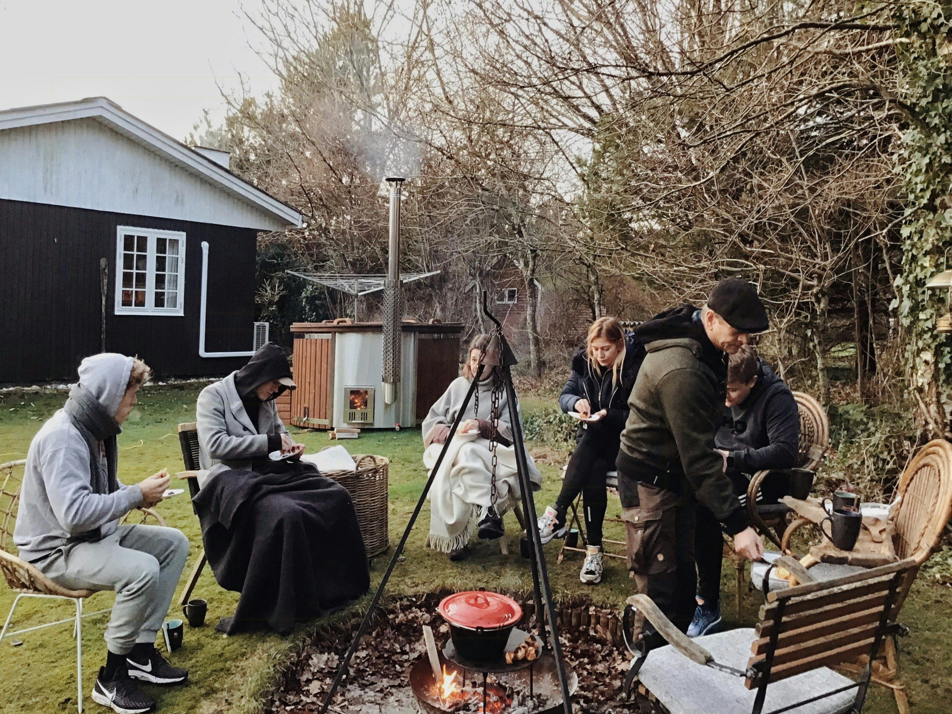 Når jeg kigger tilbage på, hvad vores bedste minder fra sommerhuset er, så er det især også højtiderne, der dukker op. Sommerhuset får lov til at danne rammen om de tidspunkter, hvor det også kan være svært at være en sammenbragt familie. Så laver vi æbleskiver over bål og drikker glögg udenfor, nogen spiller spil, nogen går tur. Vi bliver forbundet, selvom vi laver forskellige ting. Noget af det allerfedeste er jo også at få lov til at forkæle hinanden. At man lige laver en drink til dem, der er i vildmarksbadet, bare fordi man har lyst. Der er noget helt vildt skønt i at opdage, at der er overskud til at give hinanden opmærksomhed og tænke på hinandens ve og vel, fordi man også selv har det godt.