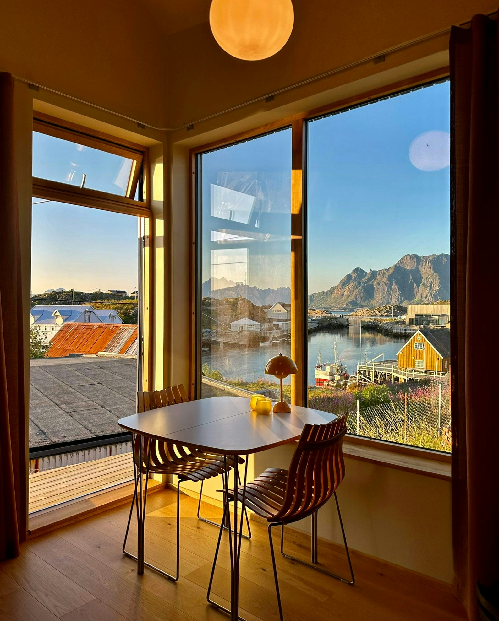 Wir waren zu dritt und haben das Haus in Skrova gemietet. Es ist wunderschön in modernem Stil gebaut und bietet einen atemberaubenden Blick auf den Hafen und die Berge rund um die Inseln.