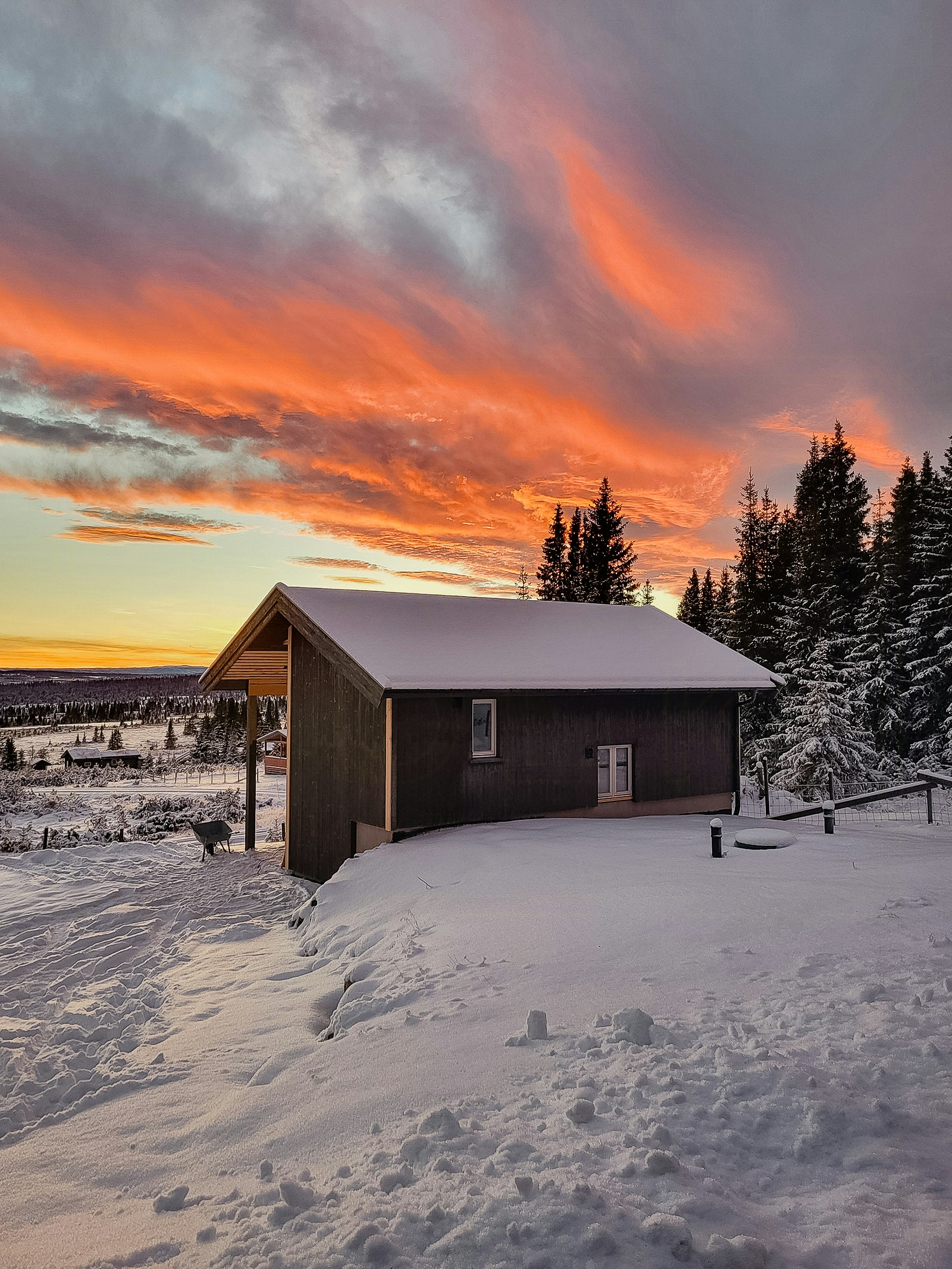 Schnee draußen, Feuer drinnen. Entdecke Hütten, gemacht für Schlitten, Skistiefel und hyggelige Abende.