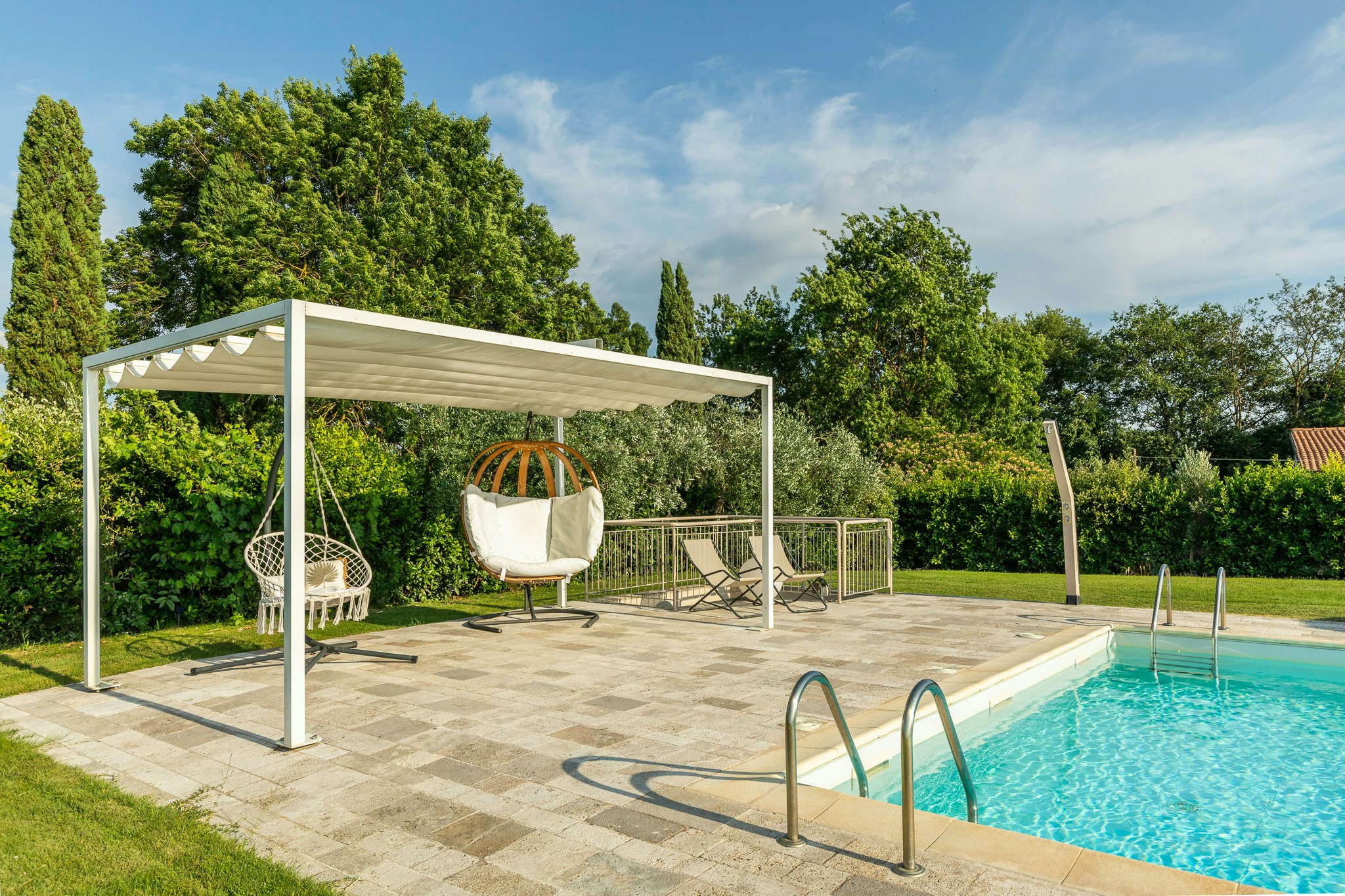 - Entspannen Sie sich im Travertin-Pool, umgeben von einem üppigen Garten.