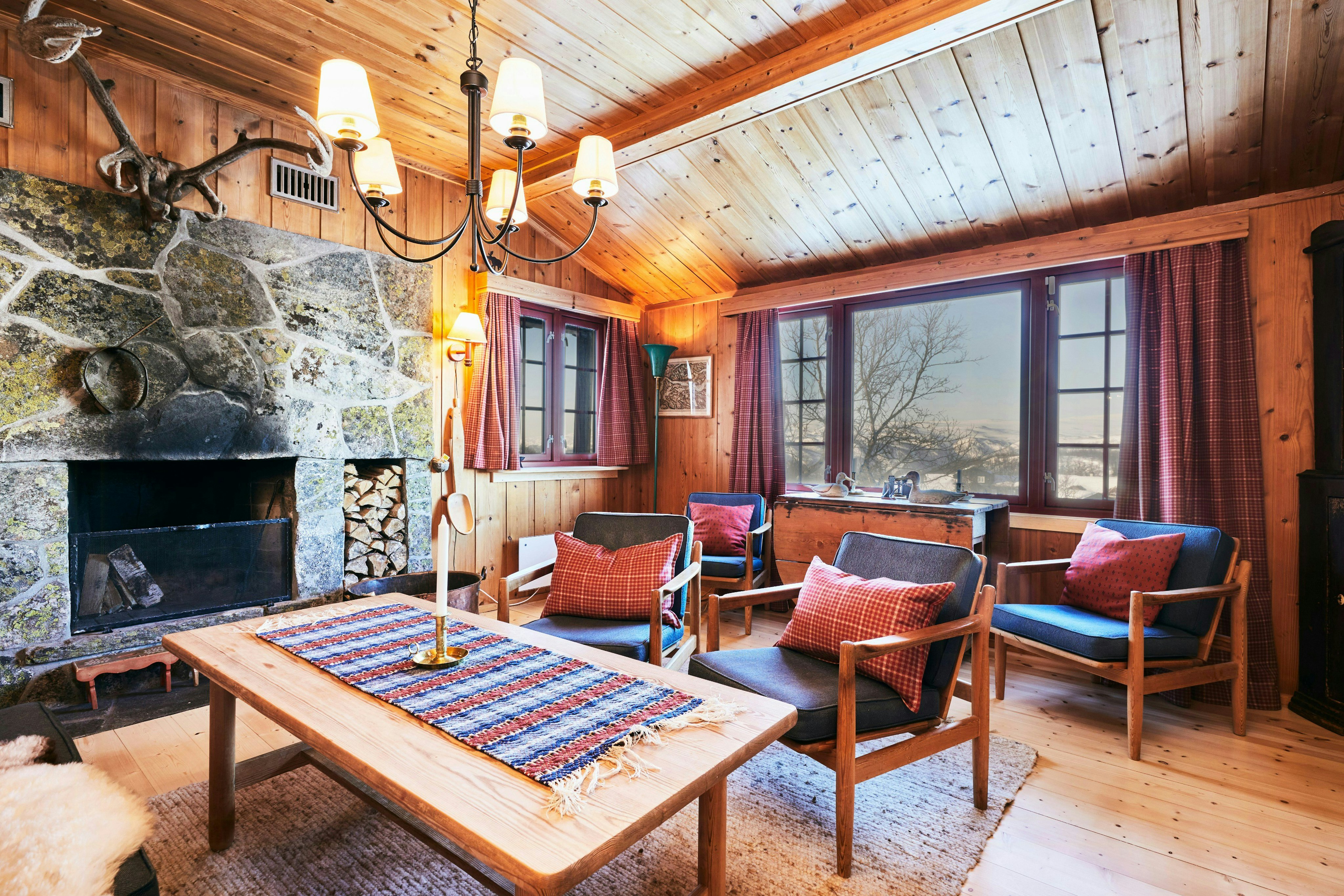 Am Fuße von Jotunheimen liegt diese charmante Hütte, die die authentische Seele der 1960er Jahre mit modernem Komfort verbindet. Das ursprüngliche Wohnzimmer hat seinen zeitlosen Charakter bewahrt und bildet den perfekten Rahmen für ruhige Abende vor dem Kamin.