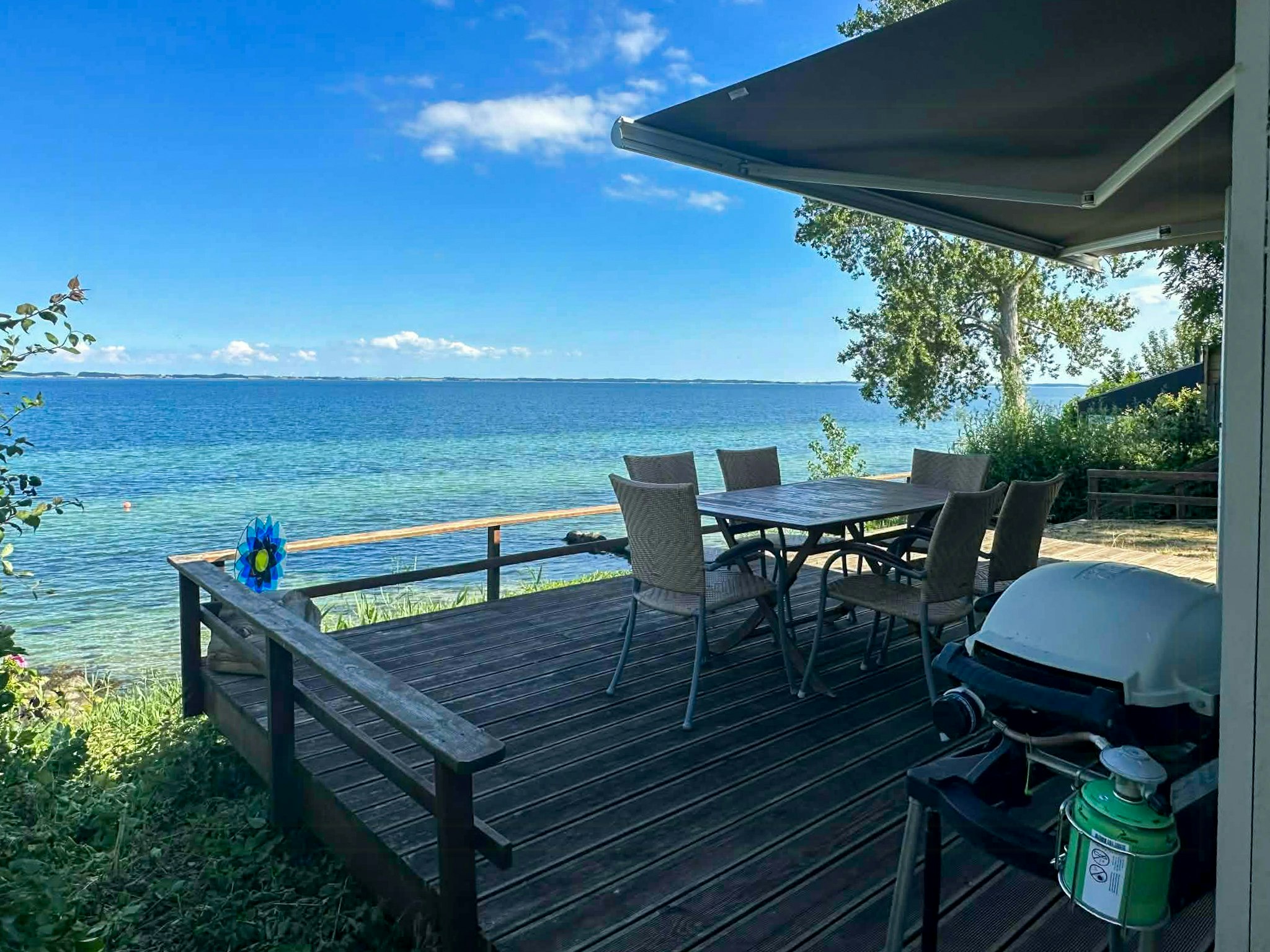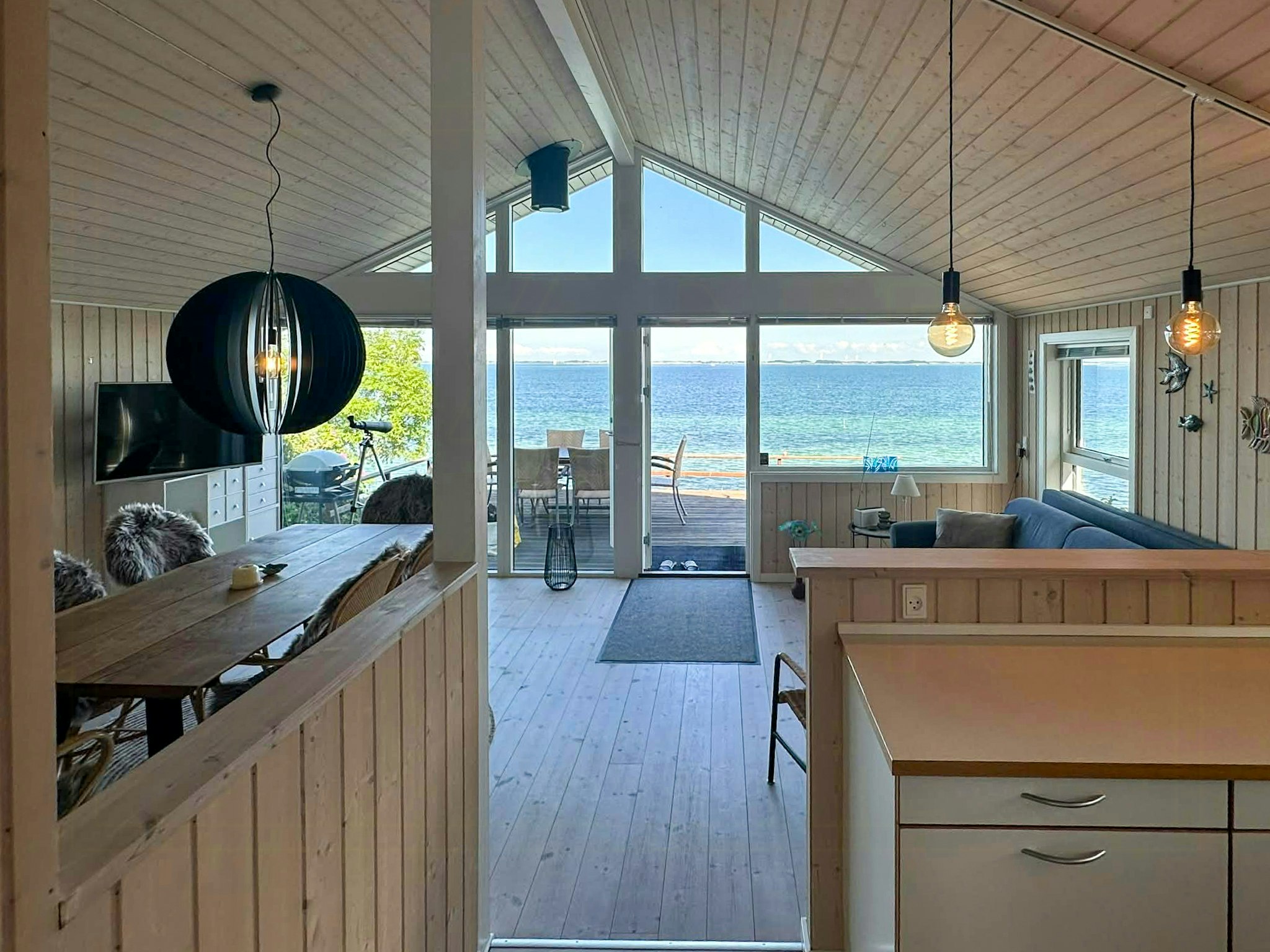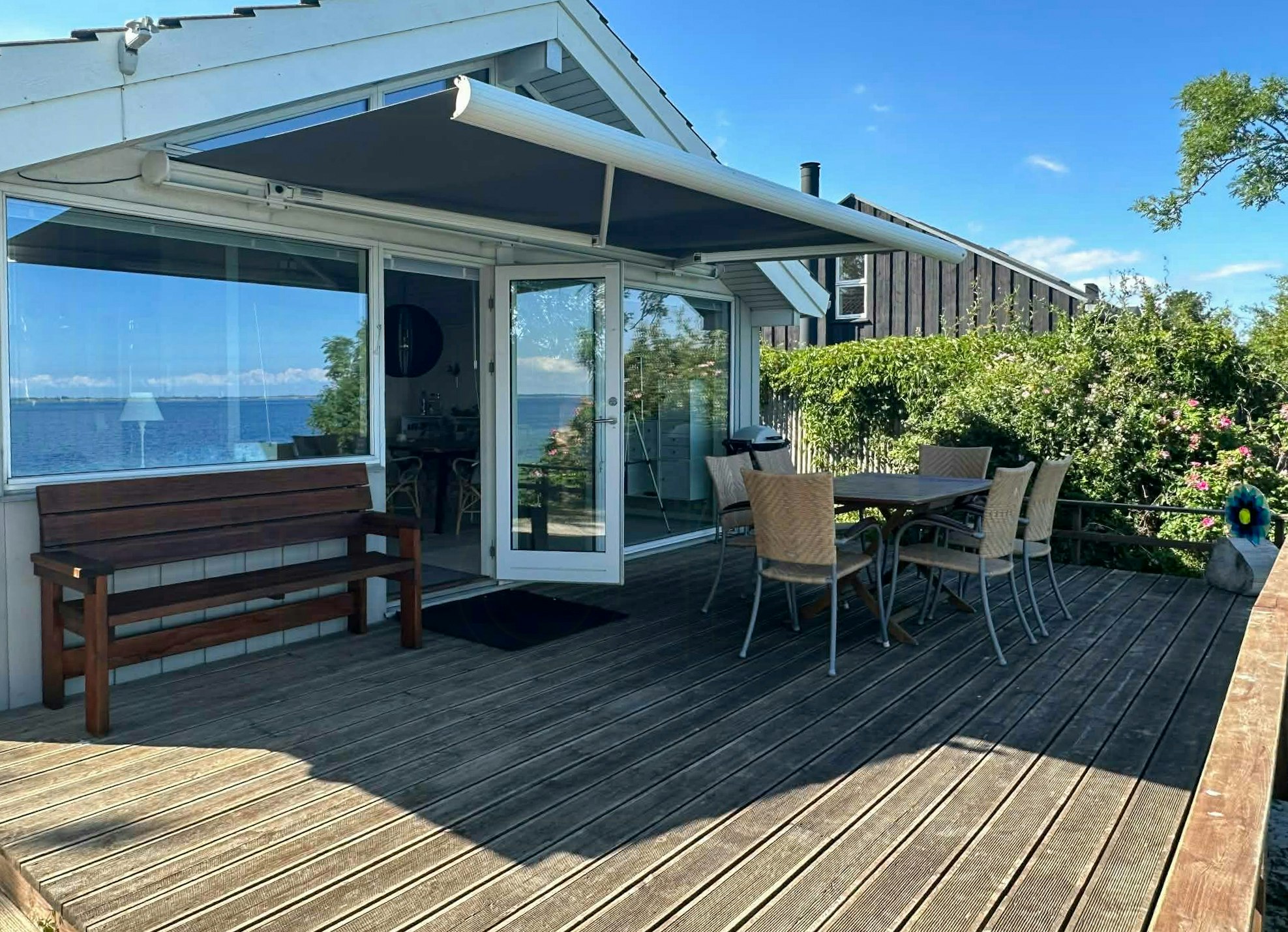 - Genießen Sie den malerischen Blick auf das Meer in Richtung Langeland von innen und außen