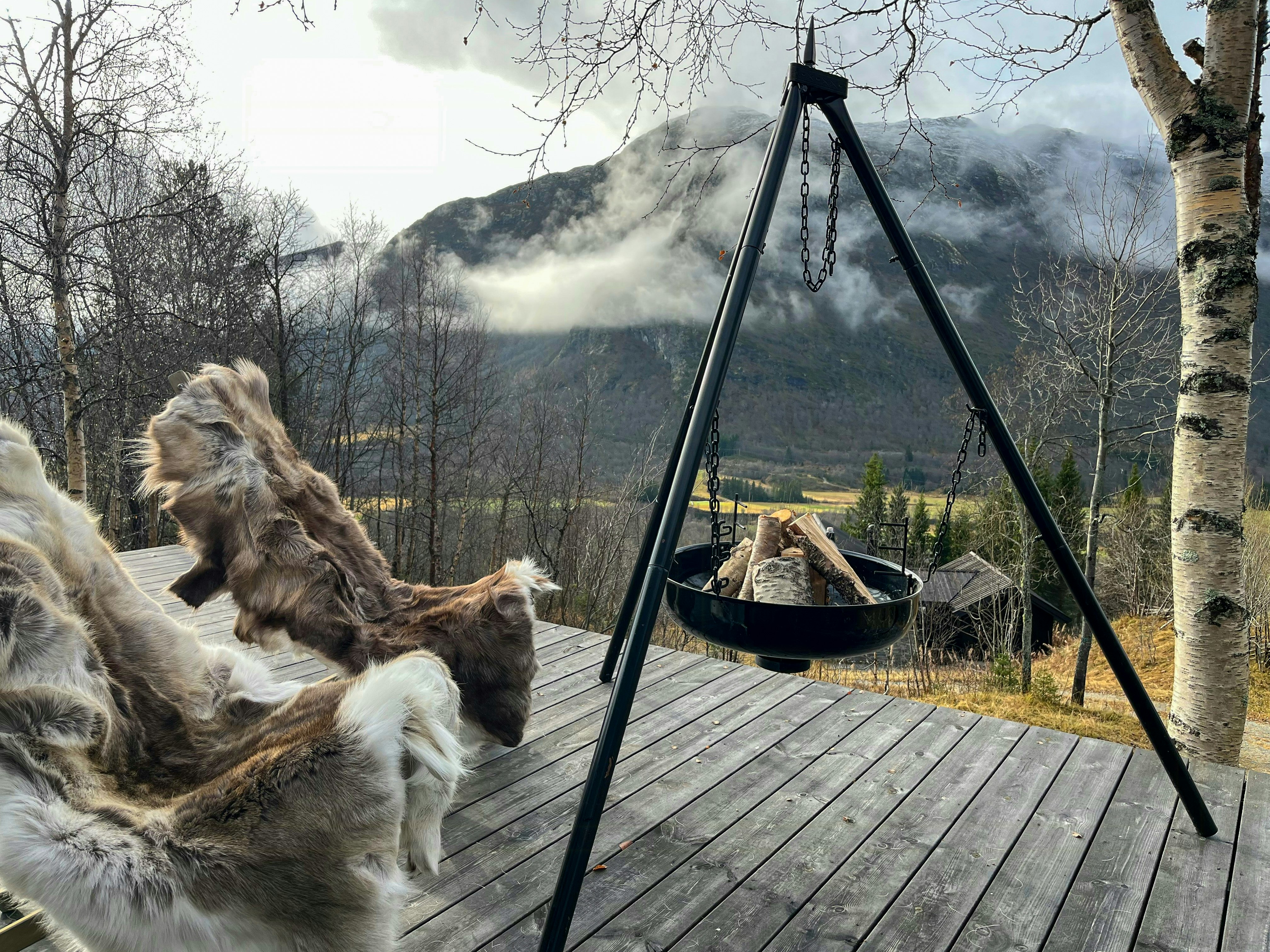 - Genießen Sie den Blick auf Svarthetta vom Wohnzimmer mit Kamin aus.