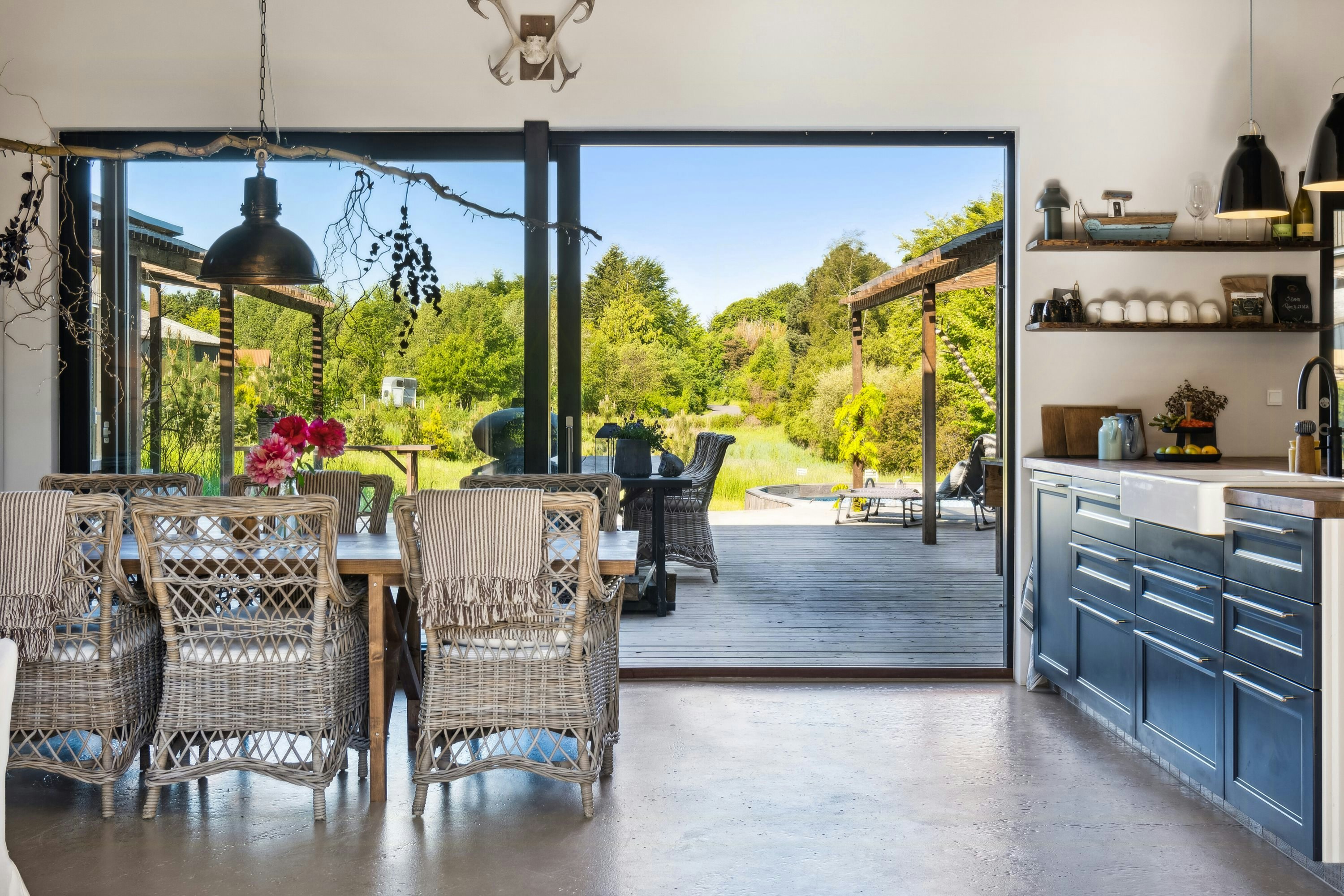Over the years, we have rented many lovely vacation homes around Denmark, but we have to say that this is probably one of the nicest houses we have ever stayed in. The layout of the house, the interior design, and not least the lavish terrace area are truly fantastic, and everything seems to have been carefully thought out to ensure maximum enjoyment and pleasure from your stay. The panoramic view of the hills and Sejerø Bay is phenomenal. Especially after sunset, when you sit safely and dry in the shelter of the sofa on the terrace under the canopy and watch the bright nights unfold in the night sky. We spent a lot of time just sitting on the terrace doing nothing. Just relaxing completely, enjoying the silence, the sun, the wind, the view. And watching the deer that came to visit every day. This place brings so much peace and joy to the soul; it is so beautiful and wonderful. And the neighborhood offers lots of opportunities, but we didn't do much of that; we really just enjoyed being in the house and on the terrace. Thank you so much for letting us stay in this very special place; we really relaxed and enjoyed our summer vacation here.