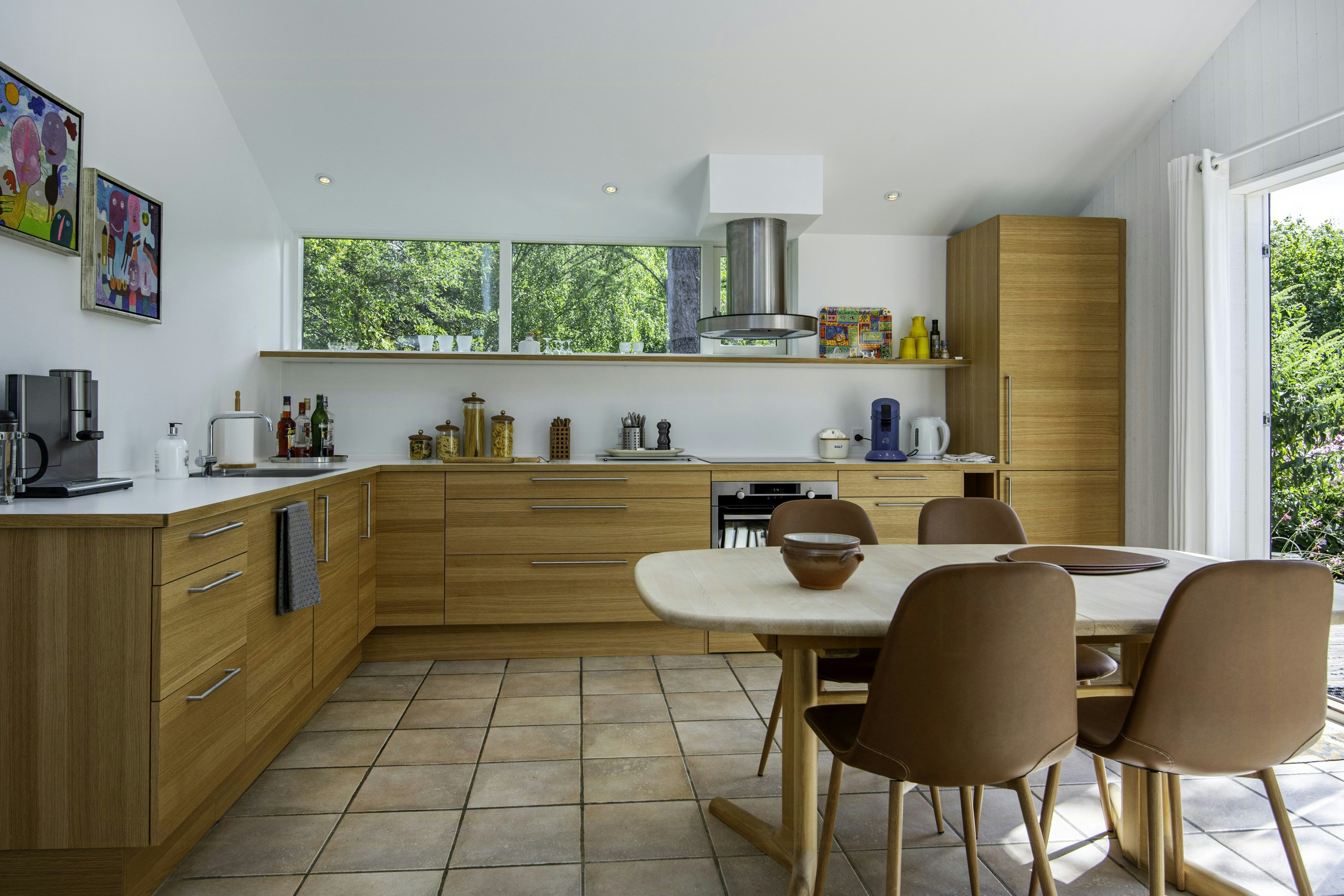 From the house's three terraces, you can enjoy the private natural grounds from different angles. The covered terrace with outdoor kitchen invites you to enjoy long dinners under the open sky.