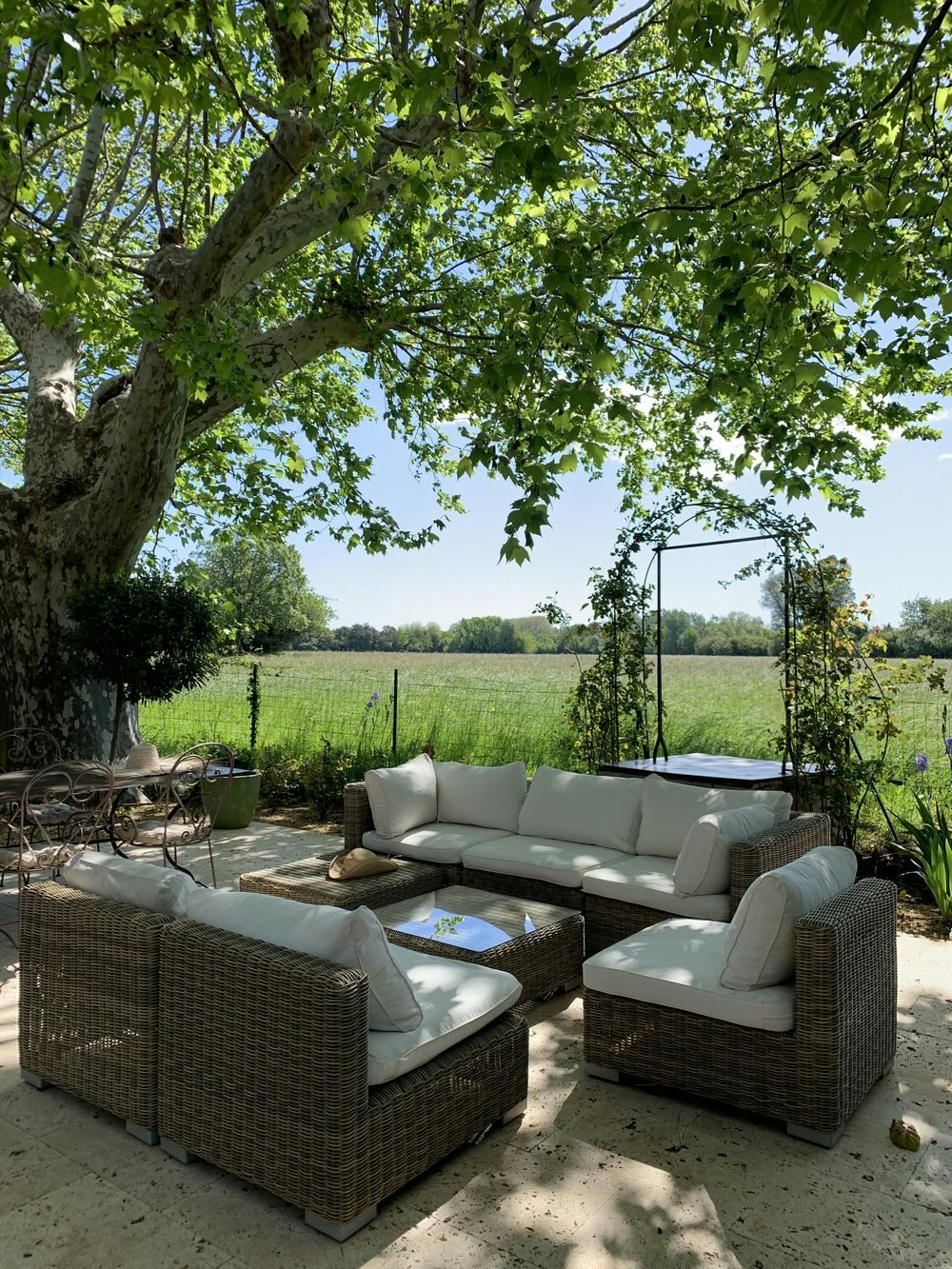 Relax in the shade of century-old plane trees in the private garden