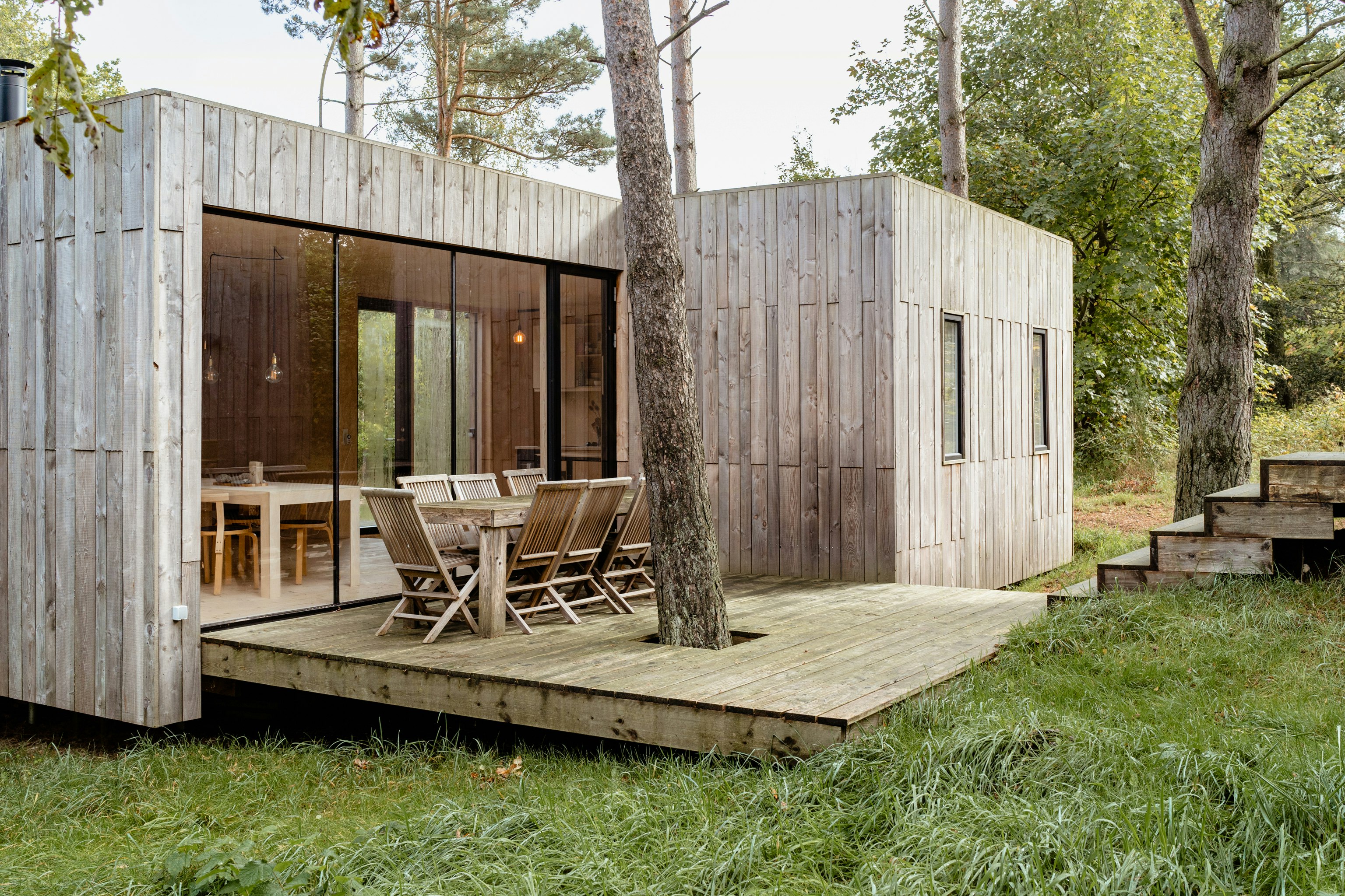 In between trees and hills in Mols Bjerge Nature Park lies an architect-designed cottage that appeals to tranquility and contemplation. The tree house is 100% organic and everything is made from bio-based natural materials. The untreated wooden walls, ceilings and floors in local woods give a feeling of being part of the forest - even when you're inside.
