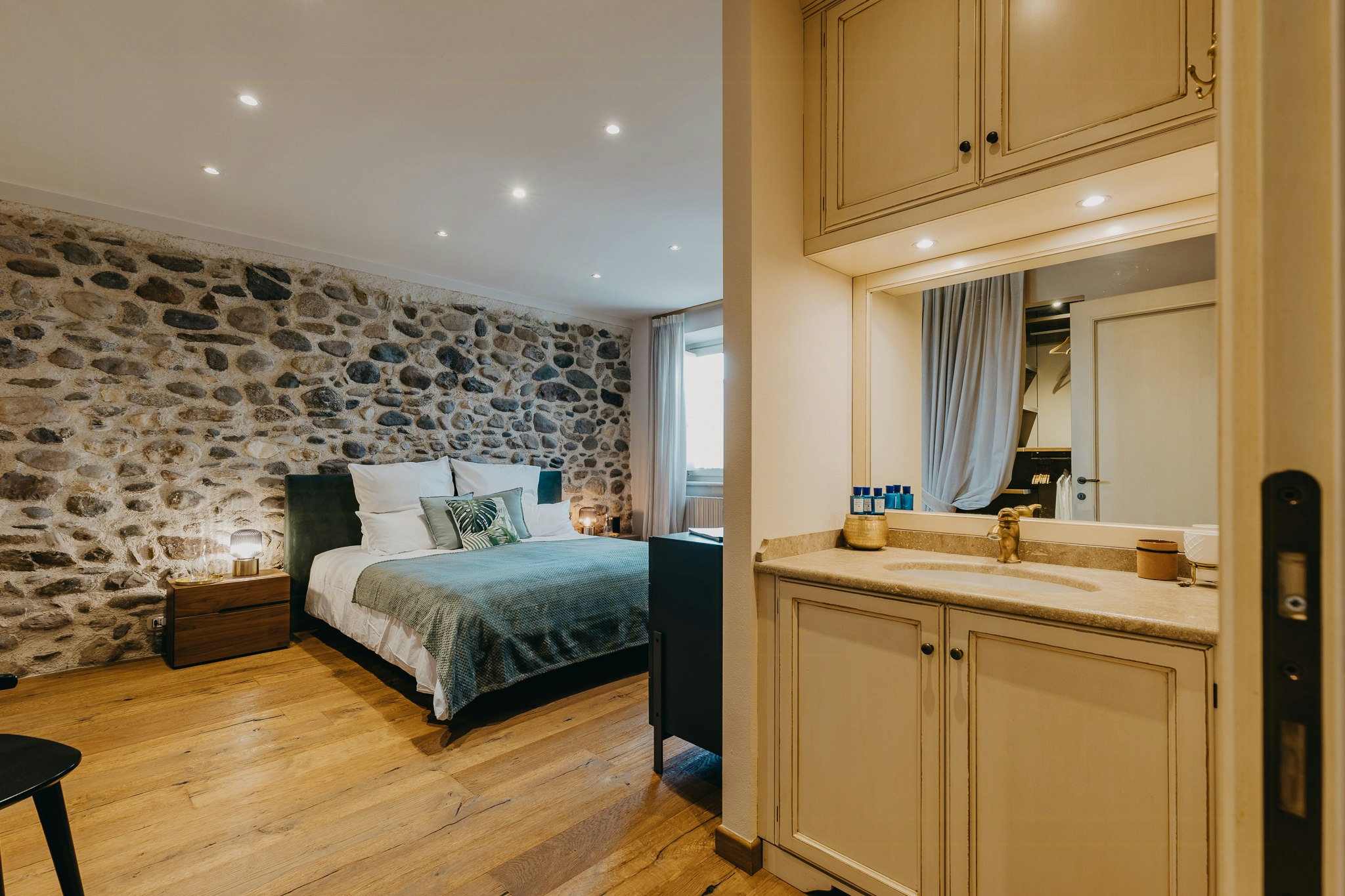 - Discover the three gourmet kitchens and the wine cellar with stone vaulted ceiling