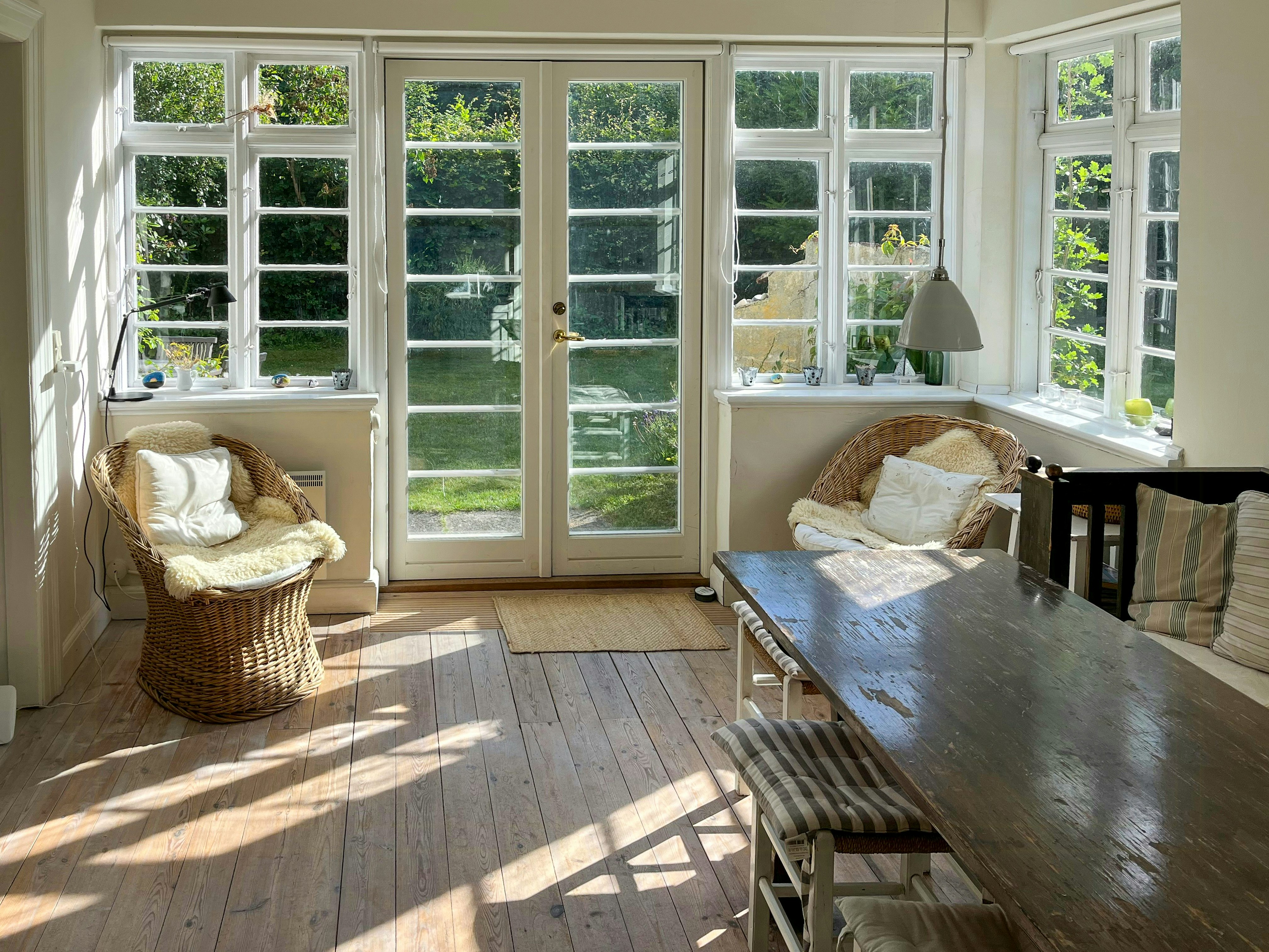 - Enjoy two wood-burning stoves and original windows from 1917