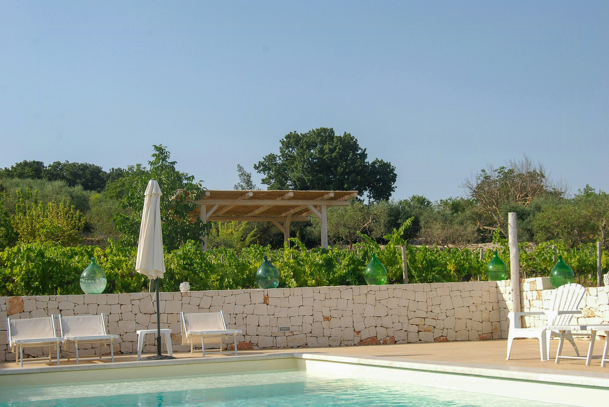 - Relax in the private pool surrounded by vineyards and olive groves, complete with a sunbathing area