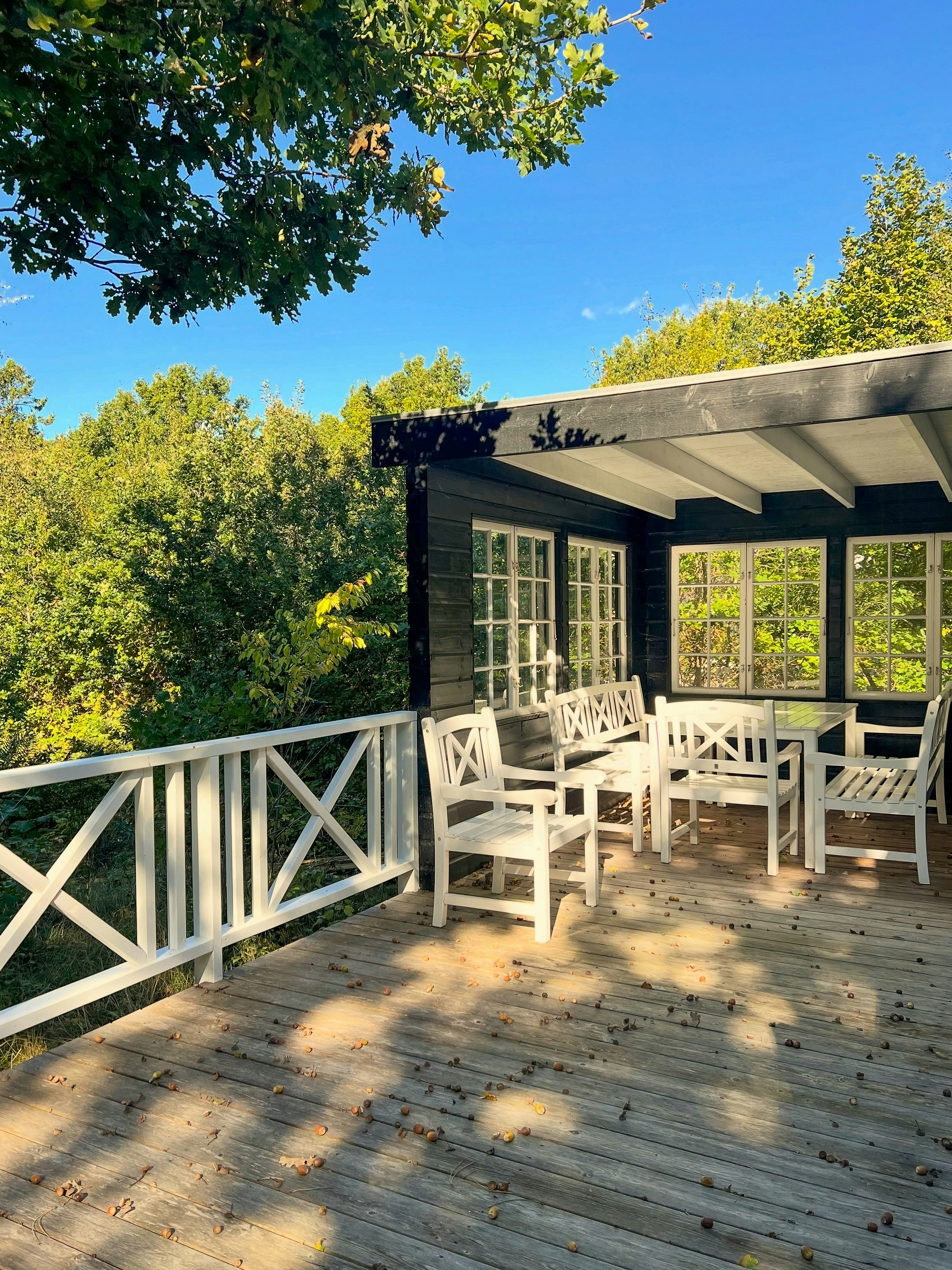 - Enjoy summer evenings on the terrace with bread on a stick by the fire pit and shelter under the canopy.