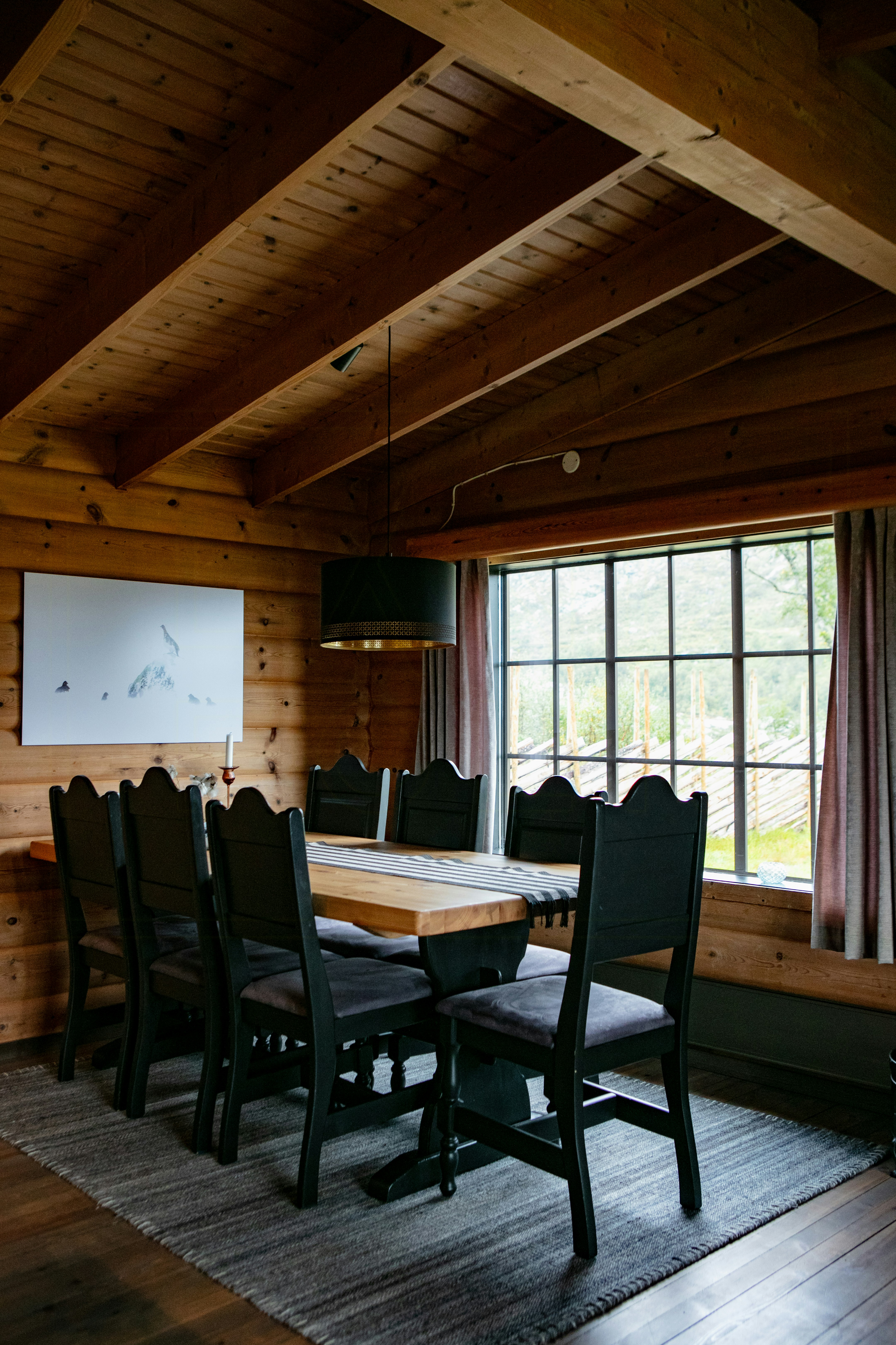 - Enjoy the cozy and warm atmosphere inside the cabin, with log walls, sheepskin rugs and dark color schemes