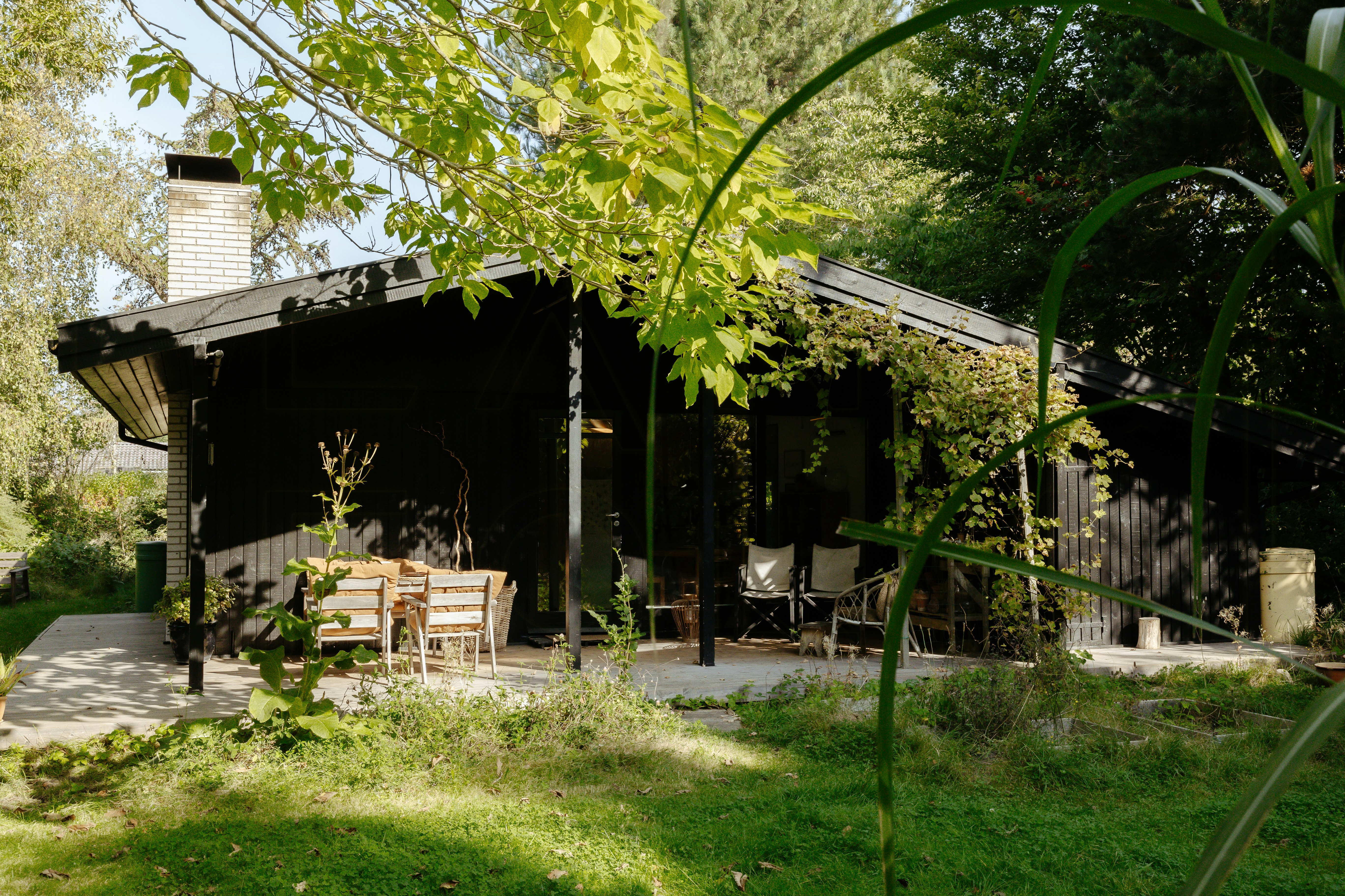 The simple and stylish wooden summer house from the 70s is the perfect place to relax from the hustle and bustle of everyday life. The large, bright living room with high ceilings is open to the kitchen. From the living room there is direct access to the lovely terrace. The decor is extremely stylish and personalized, but with a Japanese twist and 70s elements in the form of the many natural materials. There's a wonderful atmosphere in the cottage and you can feel it from the moment you walk in the door. Directly from the living room you can enjoy the lovely view of the wild, natural garden filled with tall grass and wild flowers. Step out onto the terrace, feel how nature surrounds you and listen to the birds chirping. Curl up in the hammock and let the calmness settle over your body. You might even be lucky enough to spot a squirrel or a fox in the stunning garden.