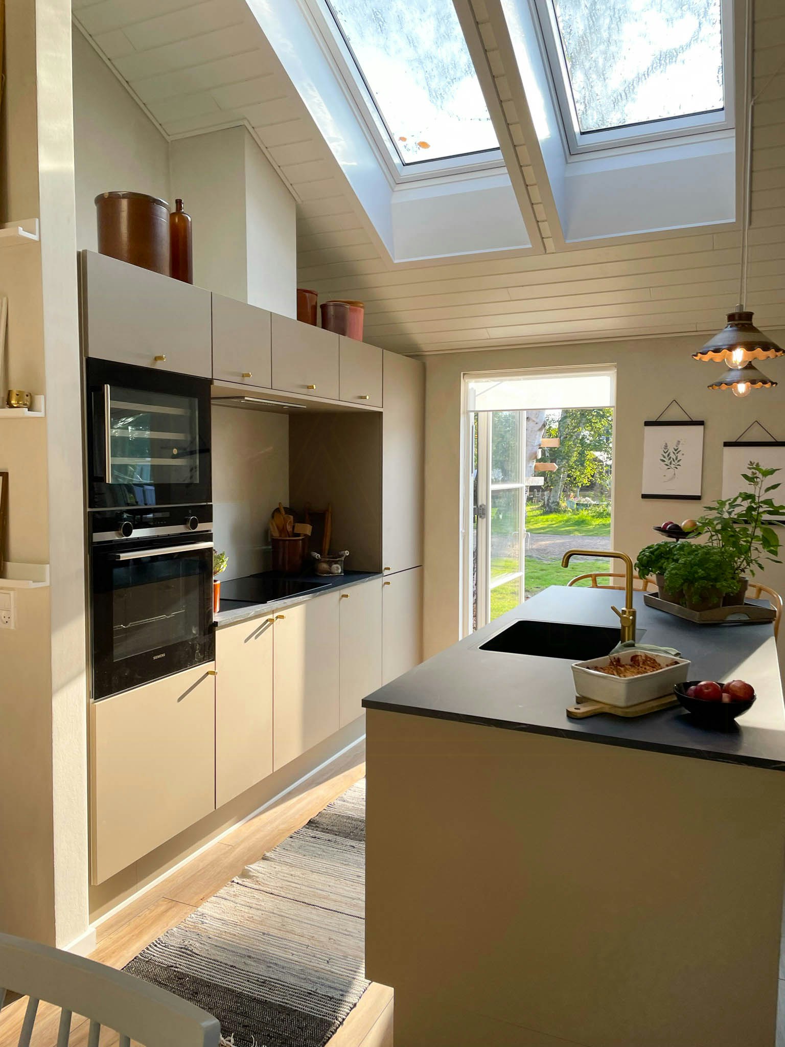 The house is located in the small fishing village of Kramnitse, just a few meters from the beach. Around the corner, there is a small grocery store and a pizzeria (unfortunately closed due to the end of the season). Further down the road, there are two construction sites where more vacation homes are being built. However, you don't notice this much in the house. The house itself is very cozy with lots of historical little details; the mix of old and new is really interesting.