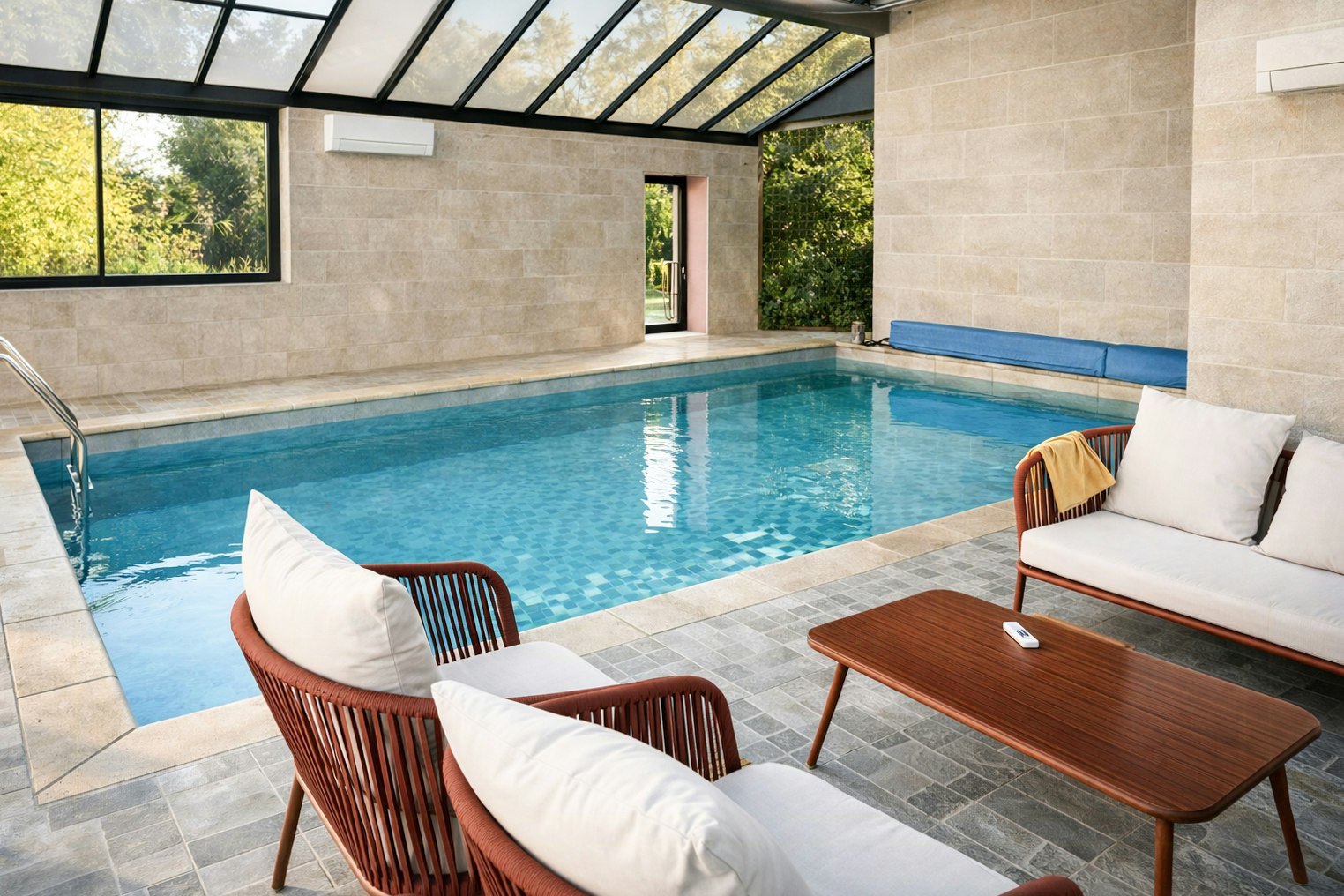 - Enjoy a heated indoor pool accessible from the house