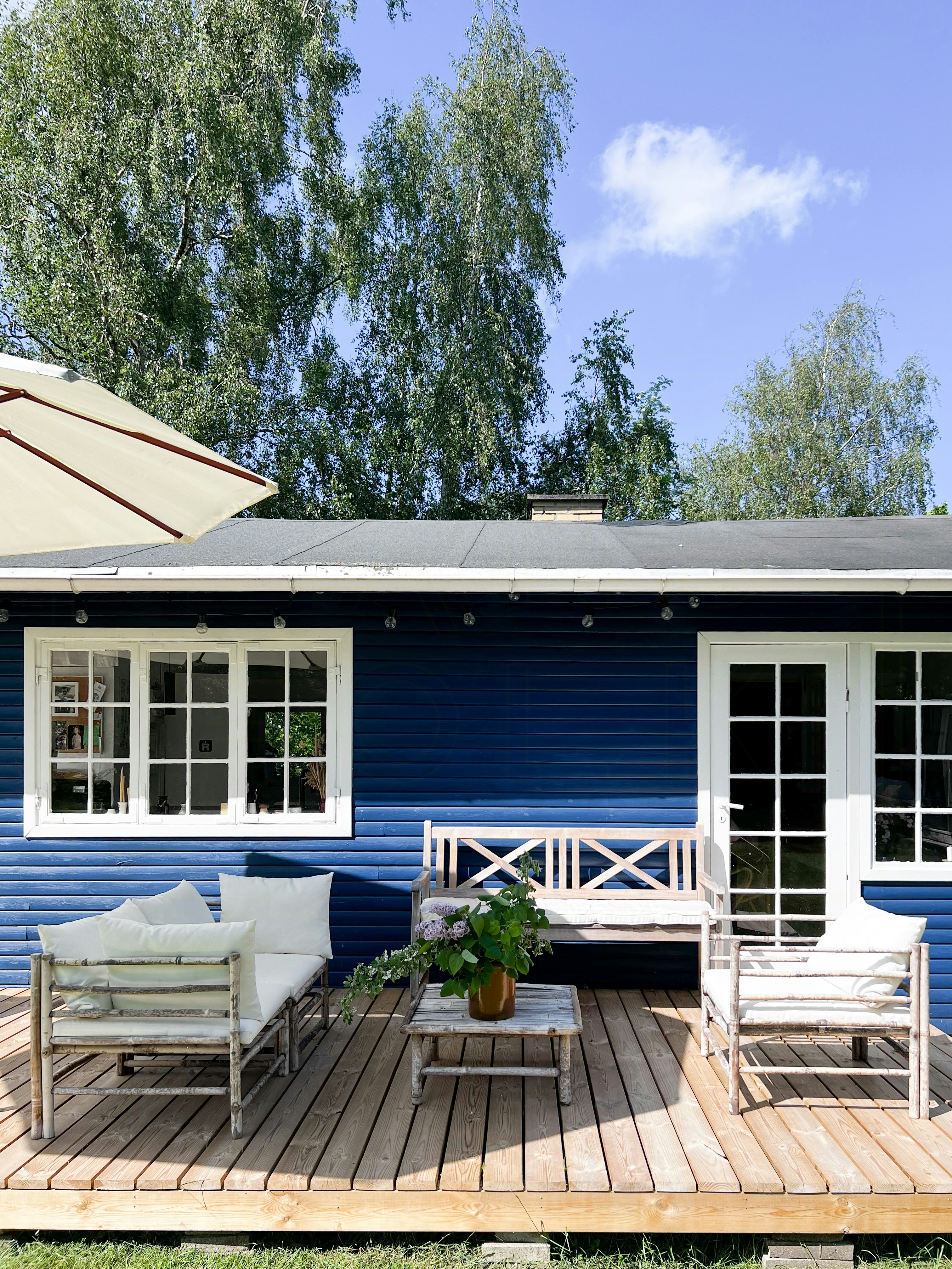 - The terrace in front of the house is the setting for summer life in the house, with food, games, fun and the opportunity to sit late into the evening in the glow of the string lights. The most amazing sunsets over the treetops are experienced from the terrace
