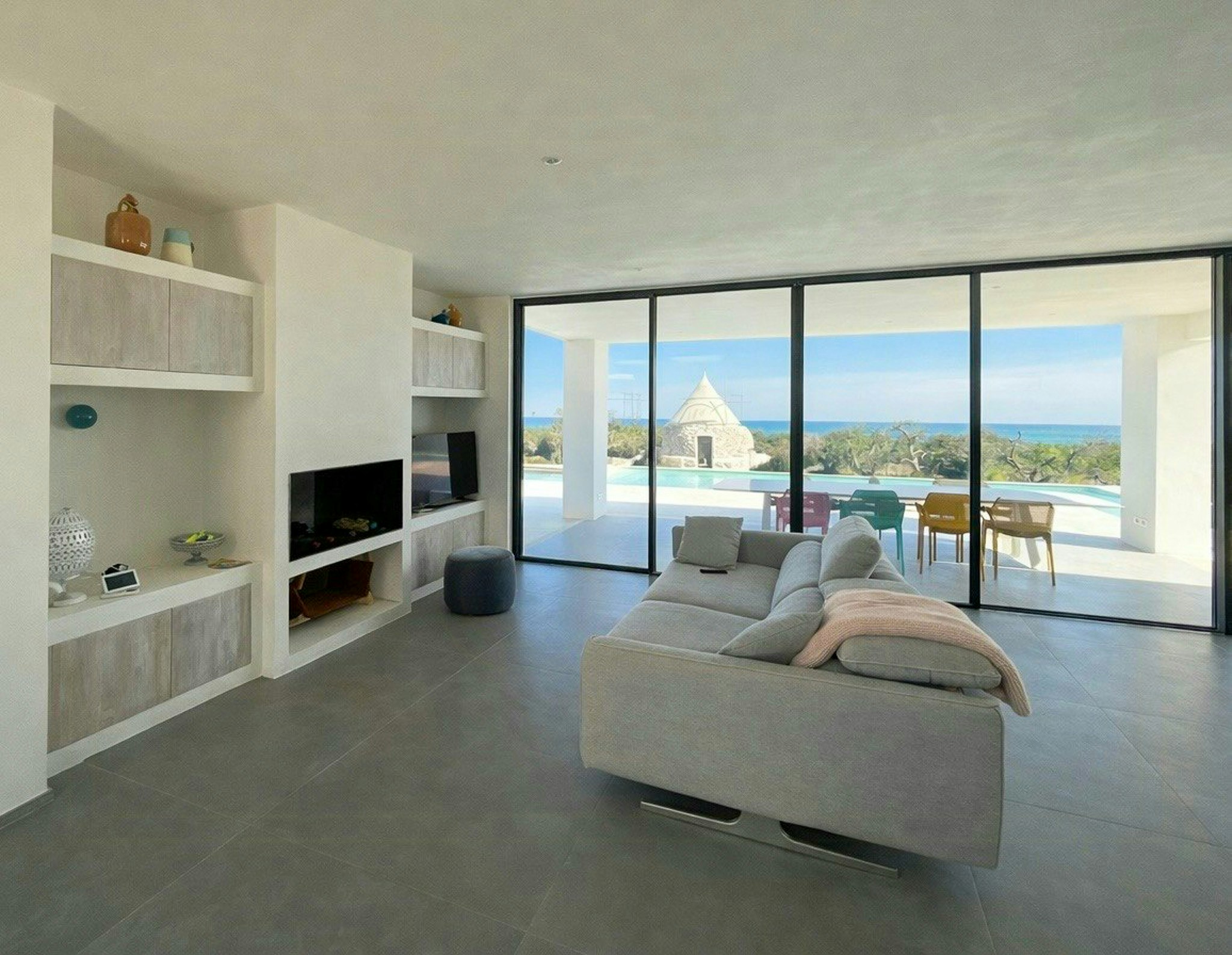 - Relax in the hot tub surrounded by centuries-old olive trees with a view of the sea