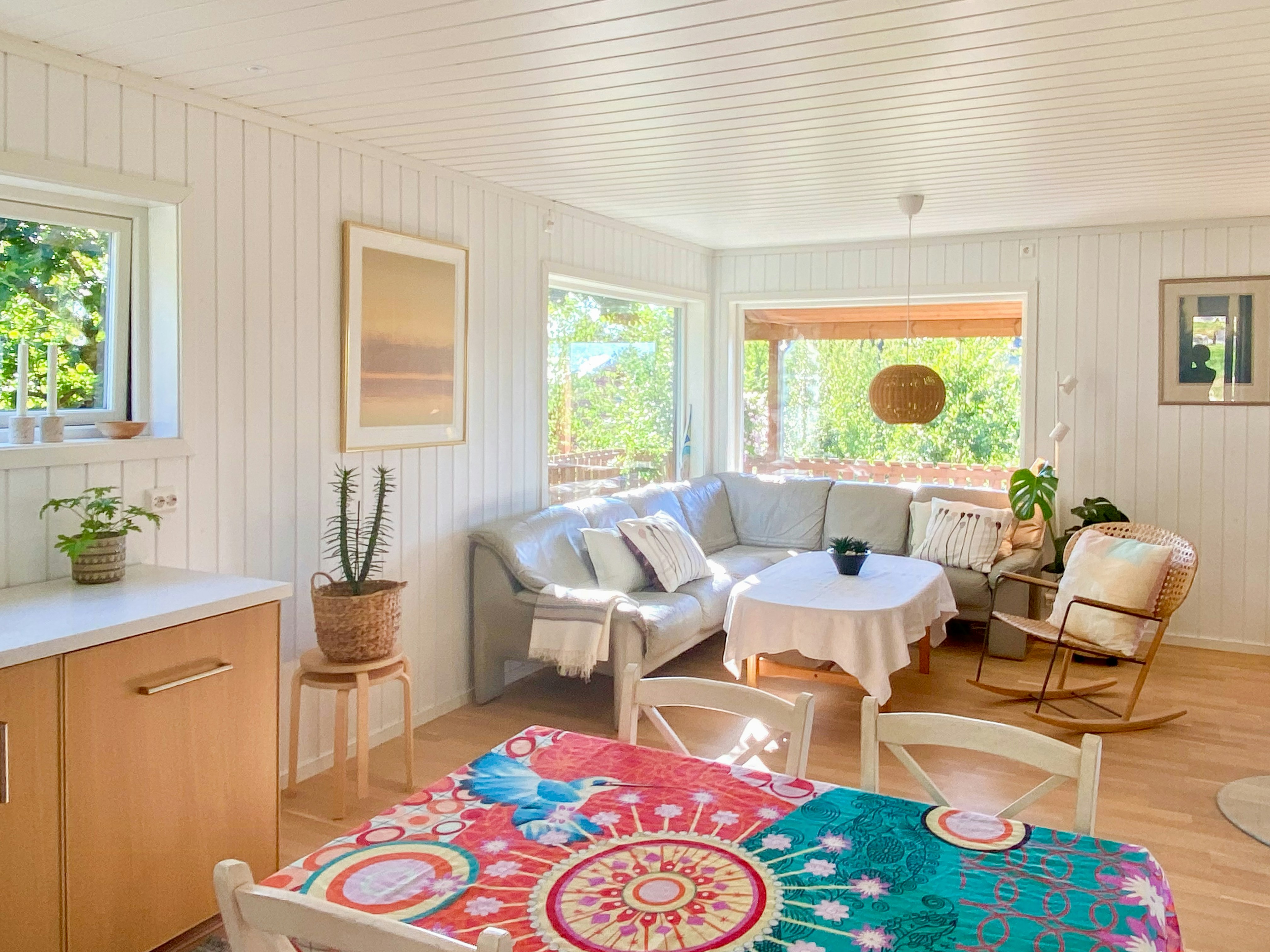 I designed this cabin myself, and it was built by my father and brother in 2015. We wanted to create a comfortable standard with a focus on simplicity and low maintenance, so that we can prioritize quality time with family and friends. The cabin has many different outdoor spaces, making it easy to find your favorite spot, whether you're looking for sun or shade.