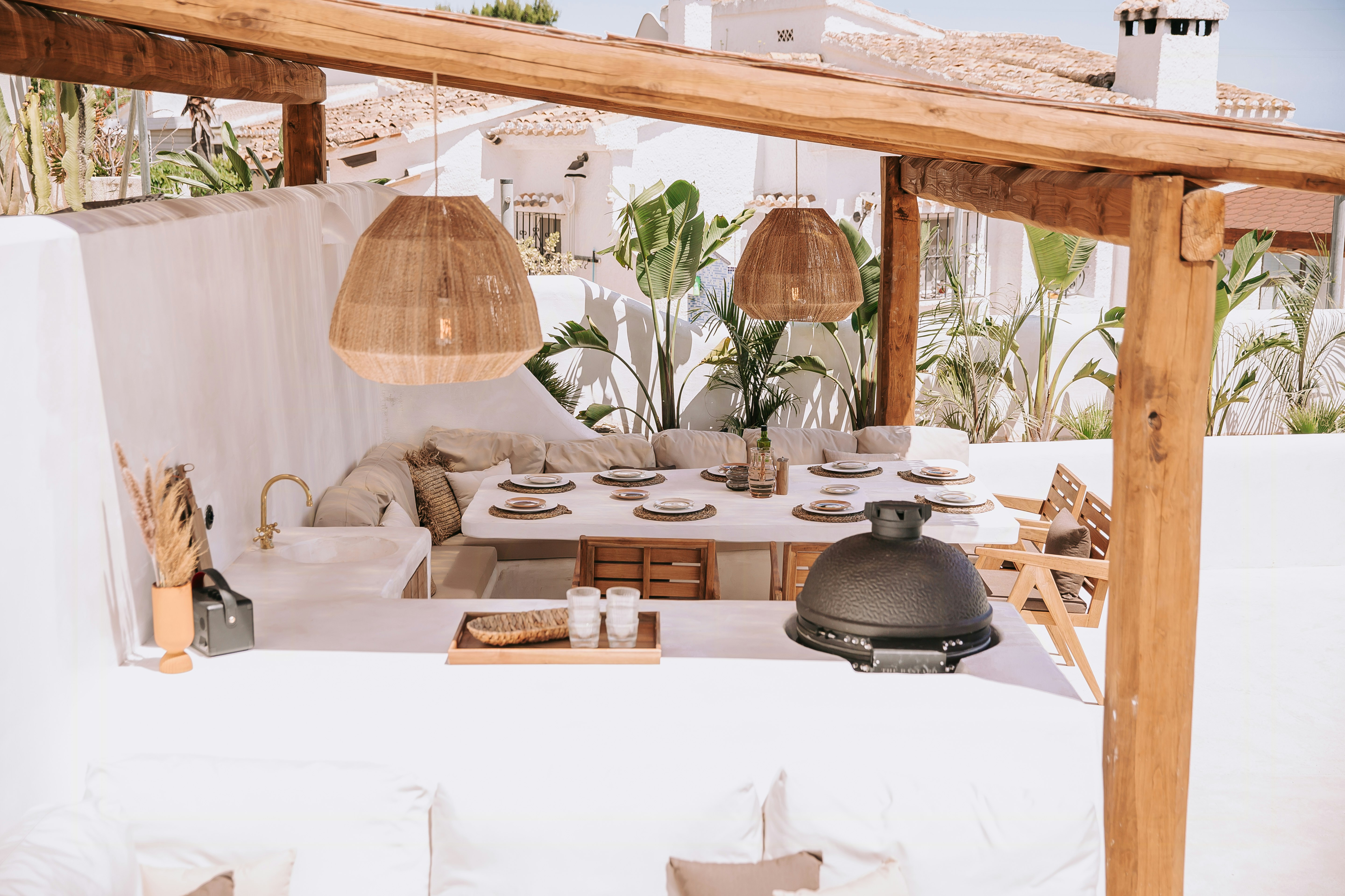 The garden is your outdoor retreat, ideal for enjoying the Mediterranean sun or sharing meals under the Benissa sky. The outdoor spaces are designed for relaxation and socializing, creating the perfect atmosphere for a memorable vacation.