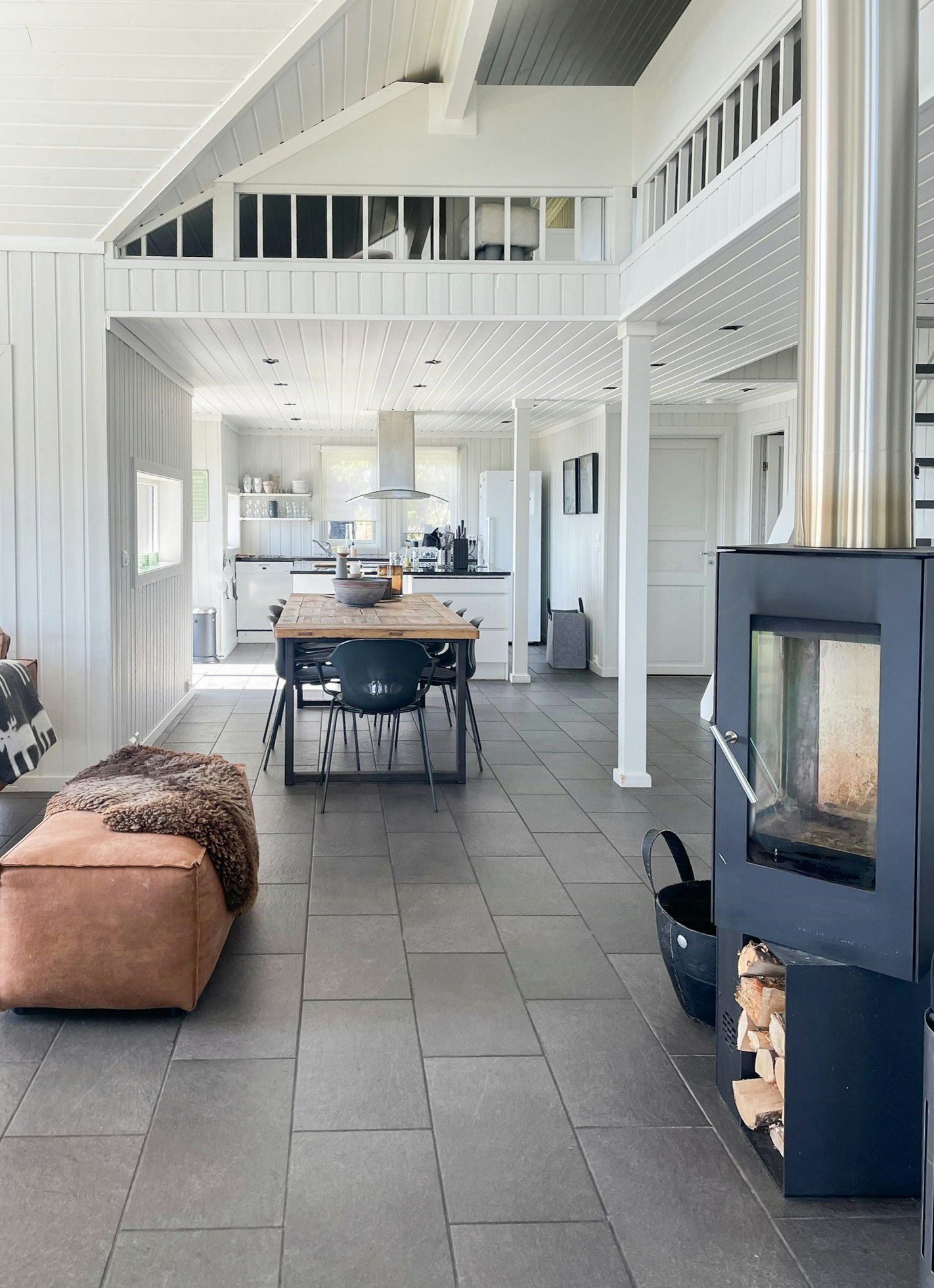 The interior of the cabin is inviting with an open-plan kitchen that meets a spacious living room, perfect for social evenings. The four bedrooms offer plenty of space for up to 8 guests, and with both a sauna and an additional toilet, comfort is assured.