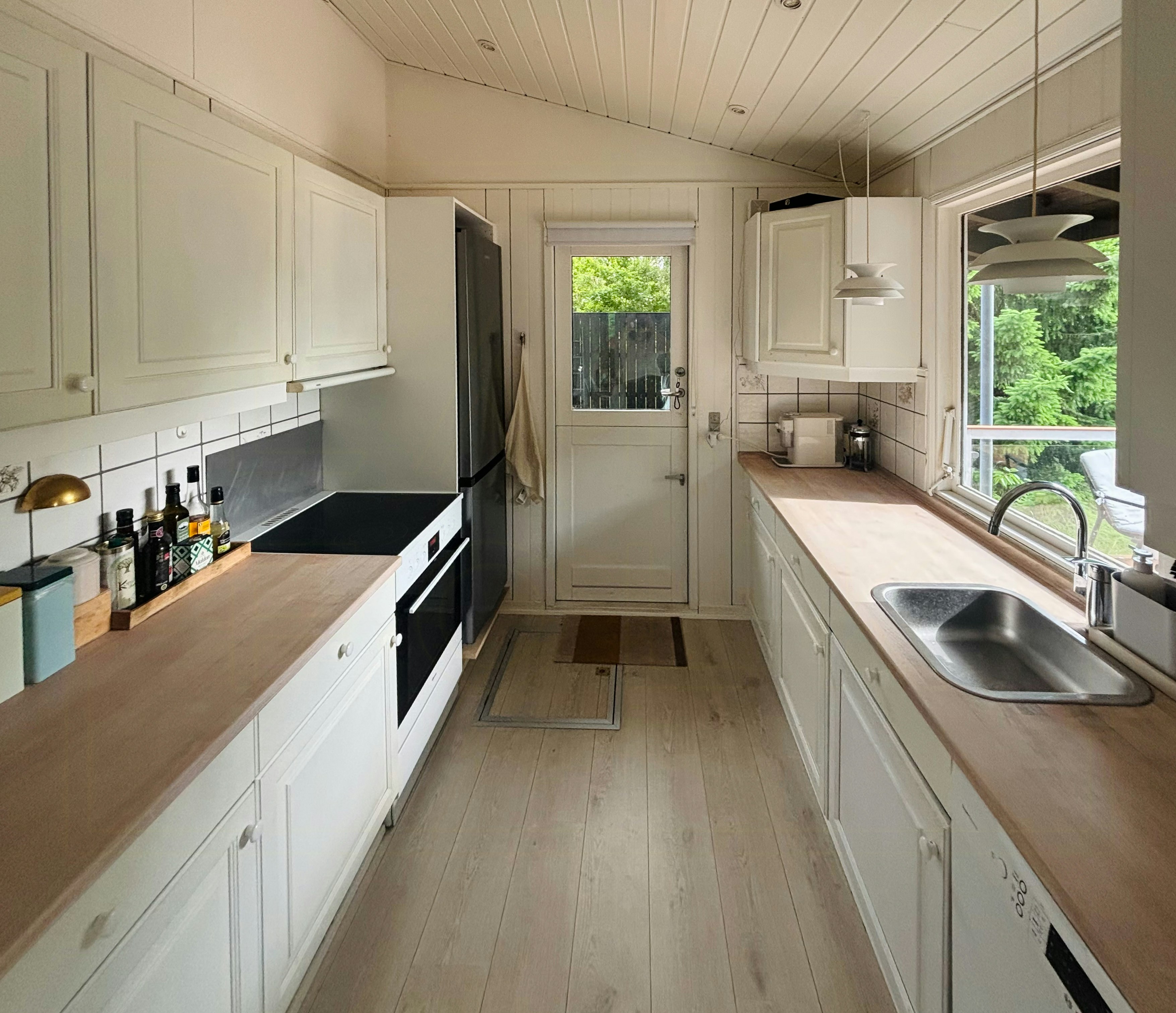 Indoors, the house offers a true cottage atmosphere with a wood-burning stove and large panoramic windows, so you can enjoy nature whatever the season and weather. The house has been updated so you don't have to compromise on comfort. The house is easily heated with a heat pump all year round, and there is a well-maintained and well-equipped kitchen in original condition, which includes a Nespresso coffee machine, dishwasher and all the kitchen equipment you need. In addition, the house has 3 good bedrooms, all of which have new electric radiators.