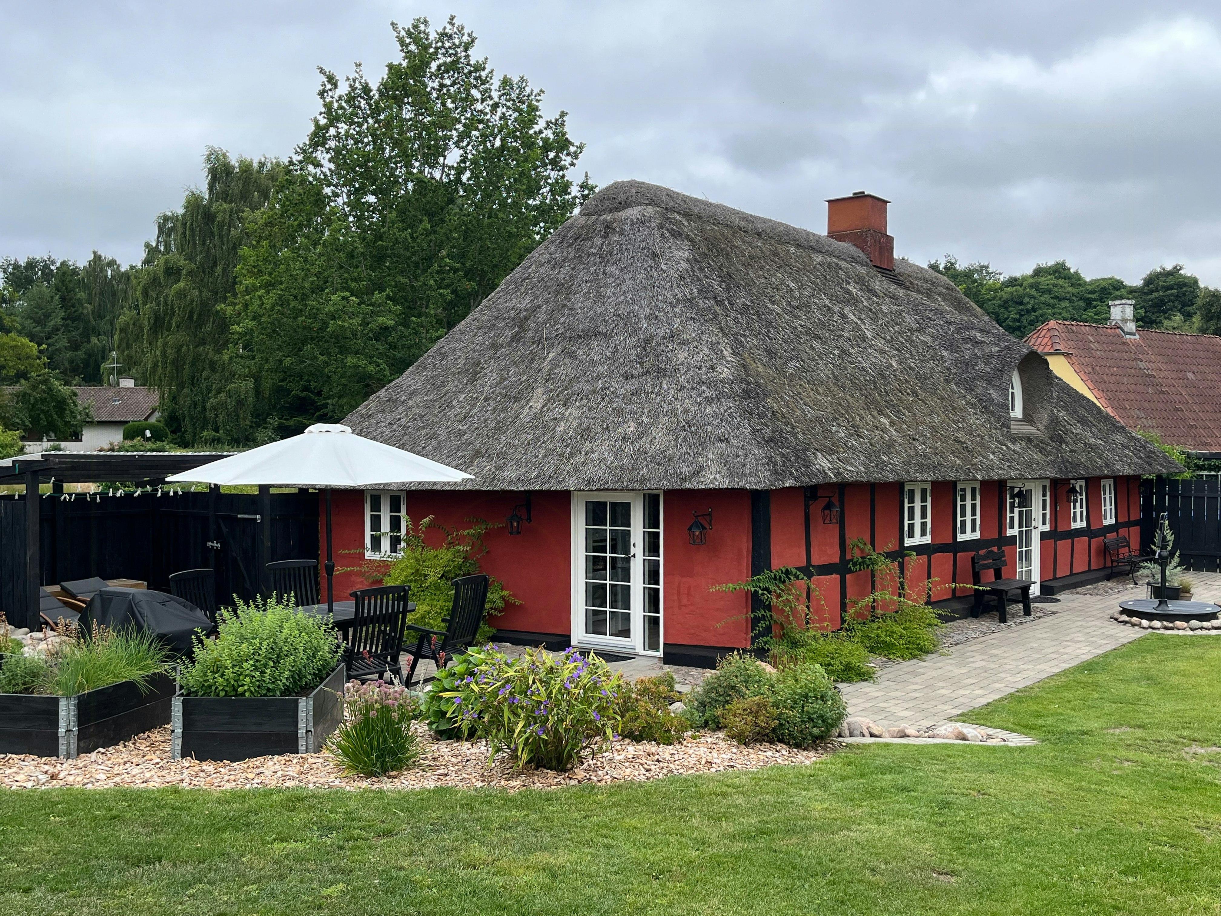 In every way beyond our expectations. Tremendous hospitality, a truly cozy and beautifully restored house. An orangery + herb garden, with everything your heart desires in terms of greenery, the coziest garden, which also works wonderfully for our four-legged friends, and overall surroundings that are balm for the soul. We can only give Pia, Leif, and their beautiful place the very best recommendations.