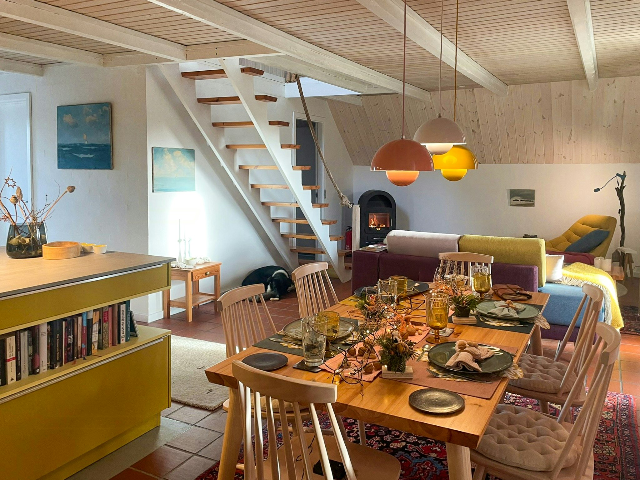La casa de vacaciones está amueblada de forma muy acogedora. La chimenea abierta y la sauna son dos de sus puntos fuertes. La cocina también está muy bien equipada, con lavavajillas y gofrera. En la sala de secado, la ropa de invierno se secó rápidamente y se calentó. La cabaña está un poco alejada de la carretera principal y de la estación de tren, pero se puede llegar fácilmente a pie. A cambio, es muy tranquila y está rodeada de naturaleza.