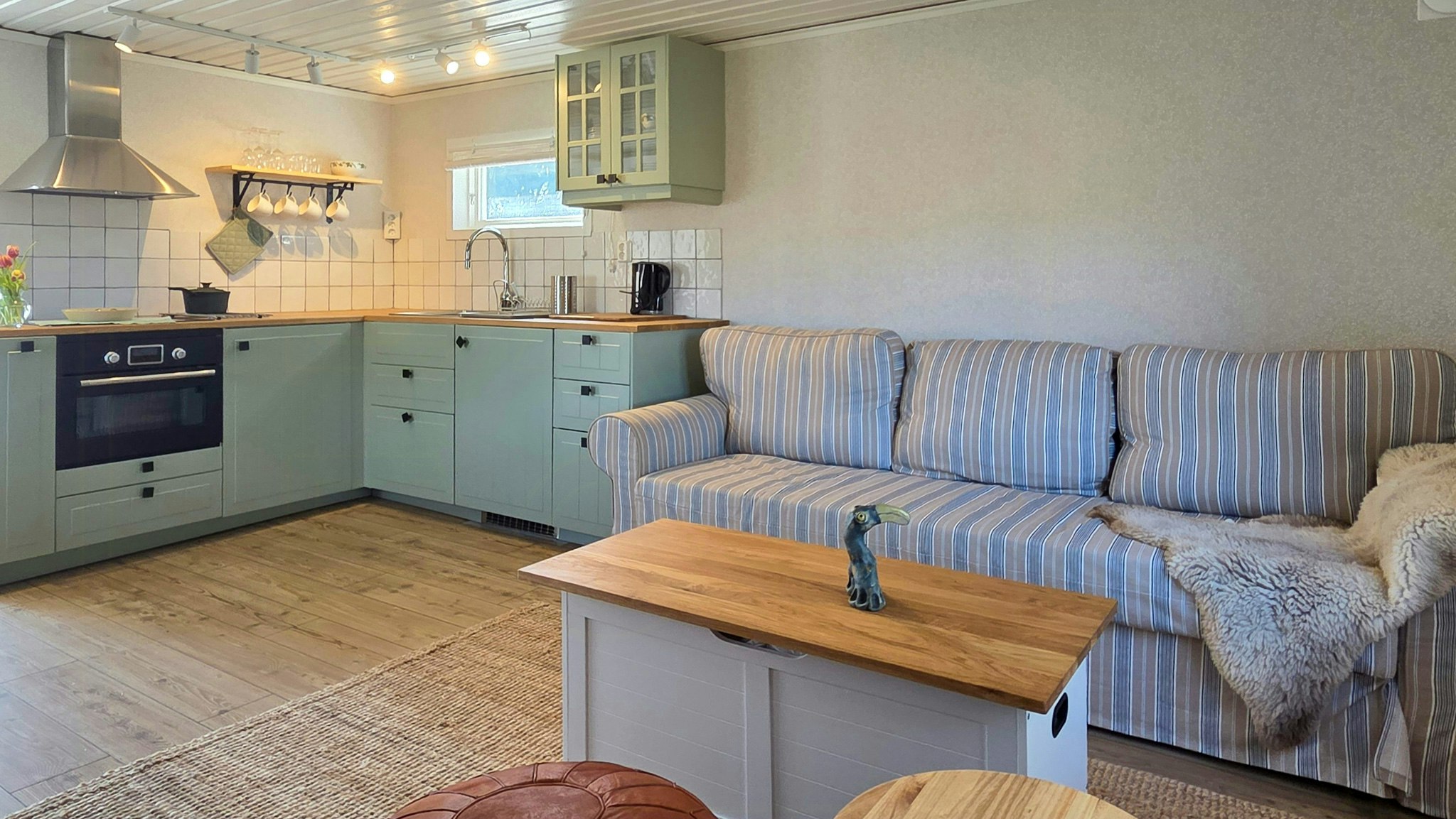 La cuidada distribución ofrece un equilibrio perfecto entre las zonas comunes y las habitaciones privadas. Ambas cabañas están decoradas de forma moderna y cuentan con cocinas totalmente equipadas que le permiten cocinar según su propio horario y gusto.