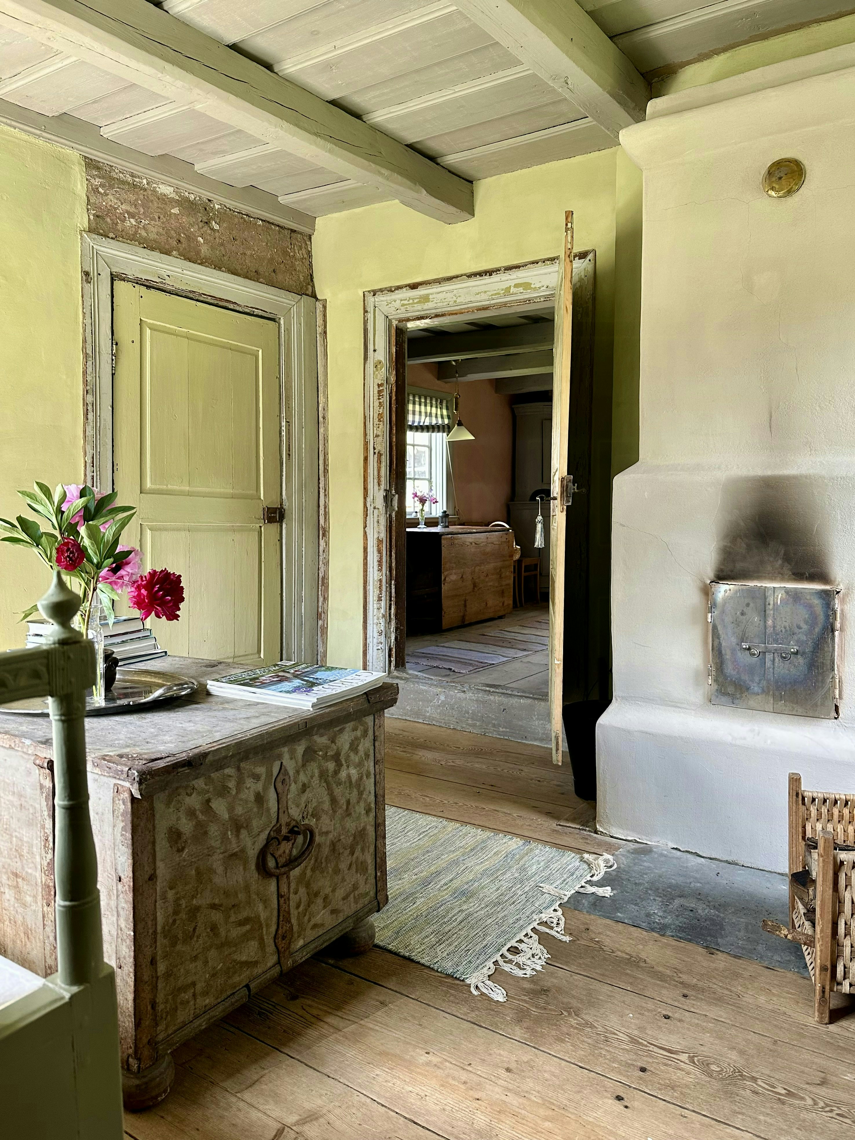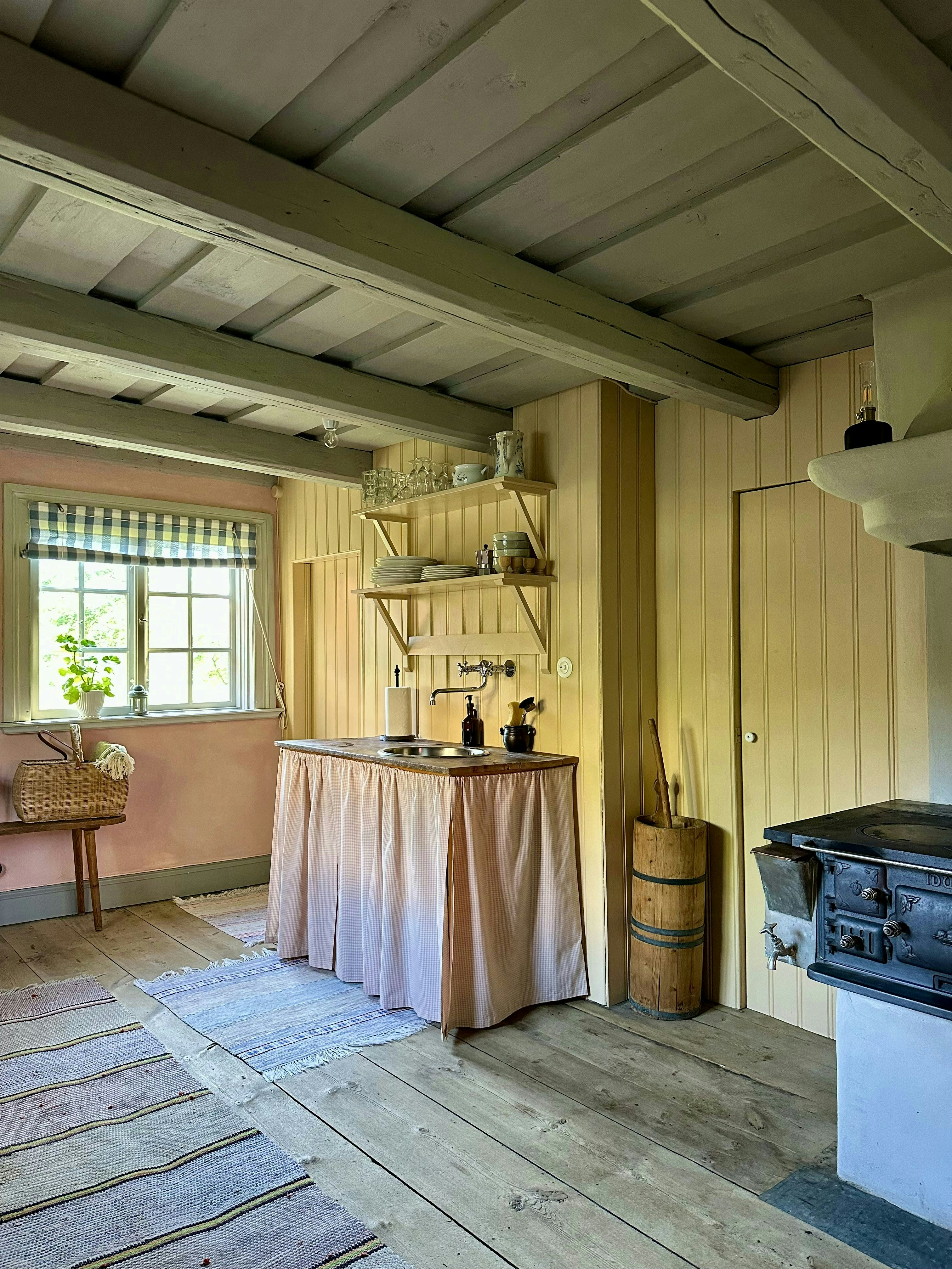 Antigua casa parroquial con estufa de hierro de leña
