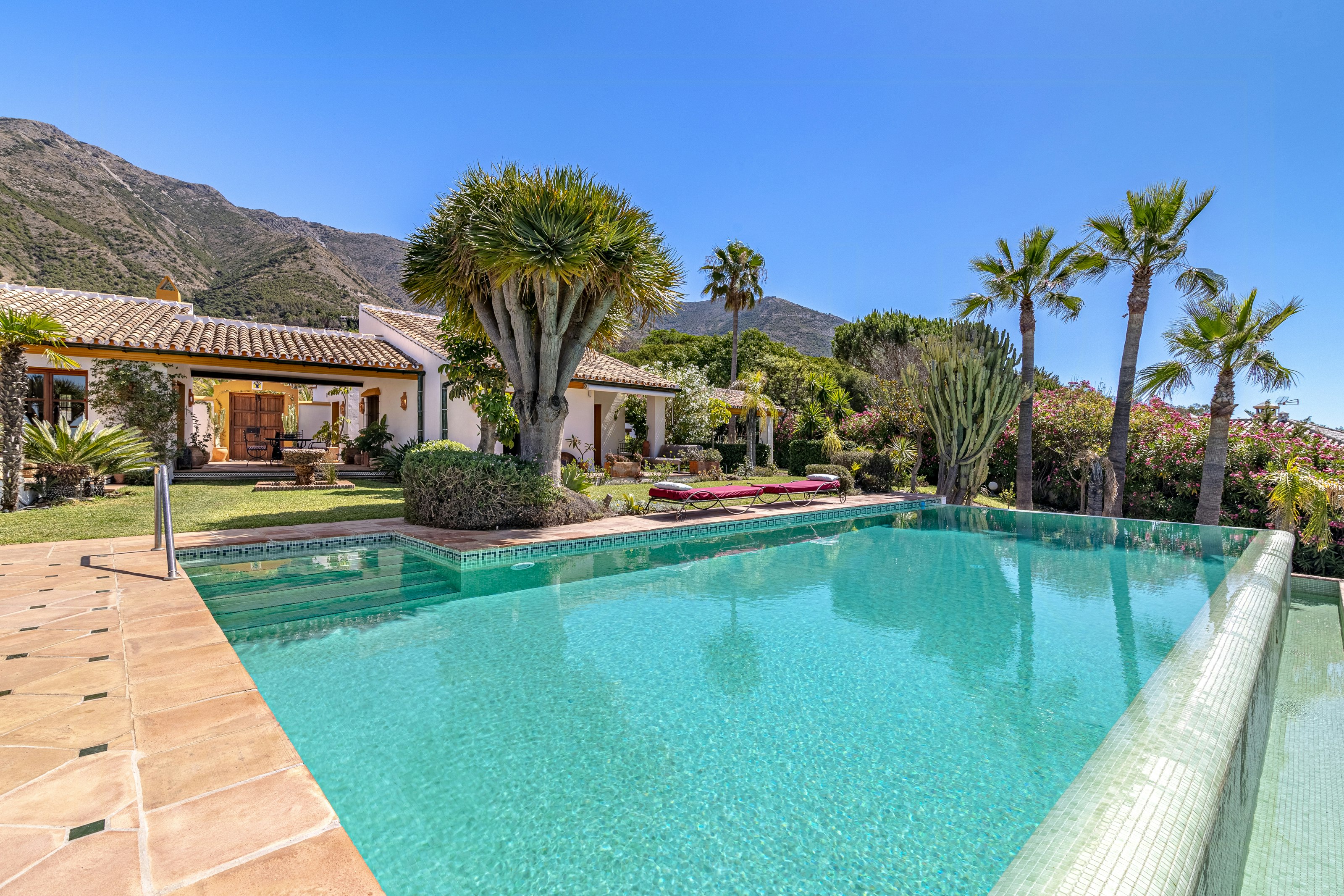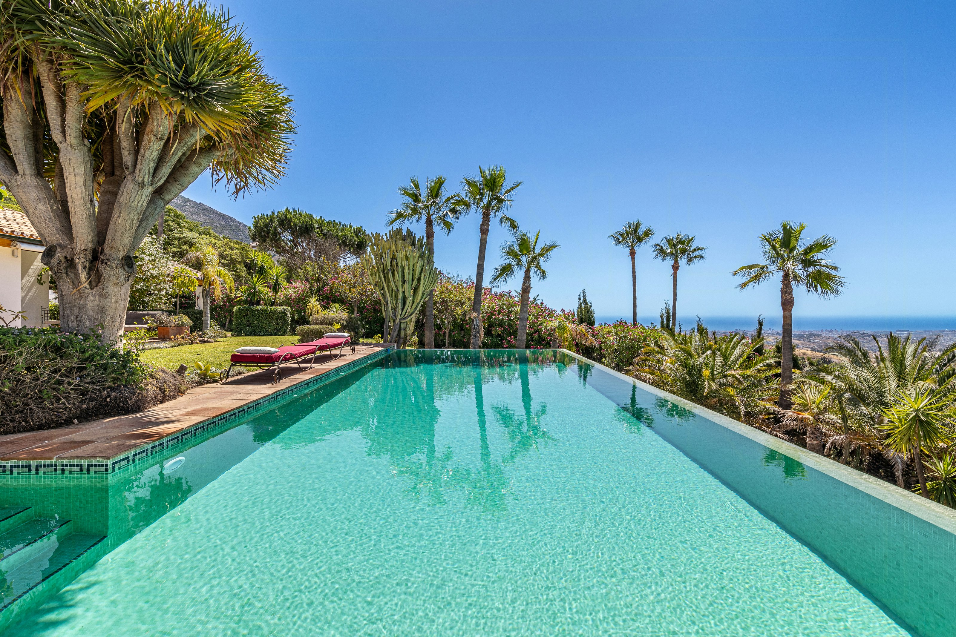 - Détendez-vous dans le jardin méditerranéen avec ses palmiers et sa vue panoramique sur la mer et les montagnes.