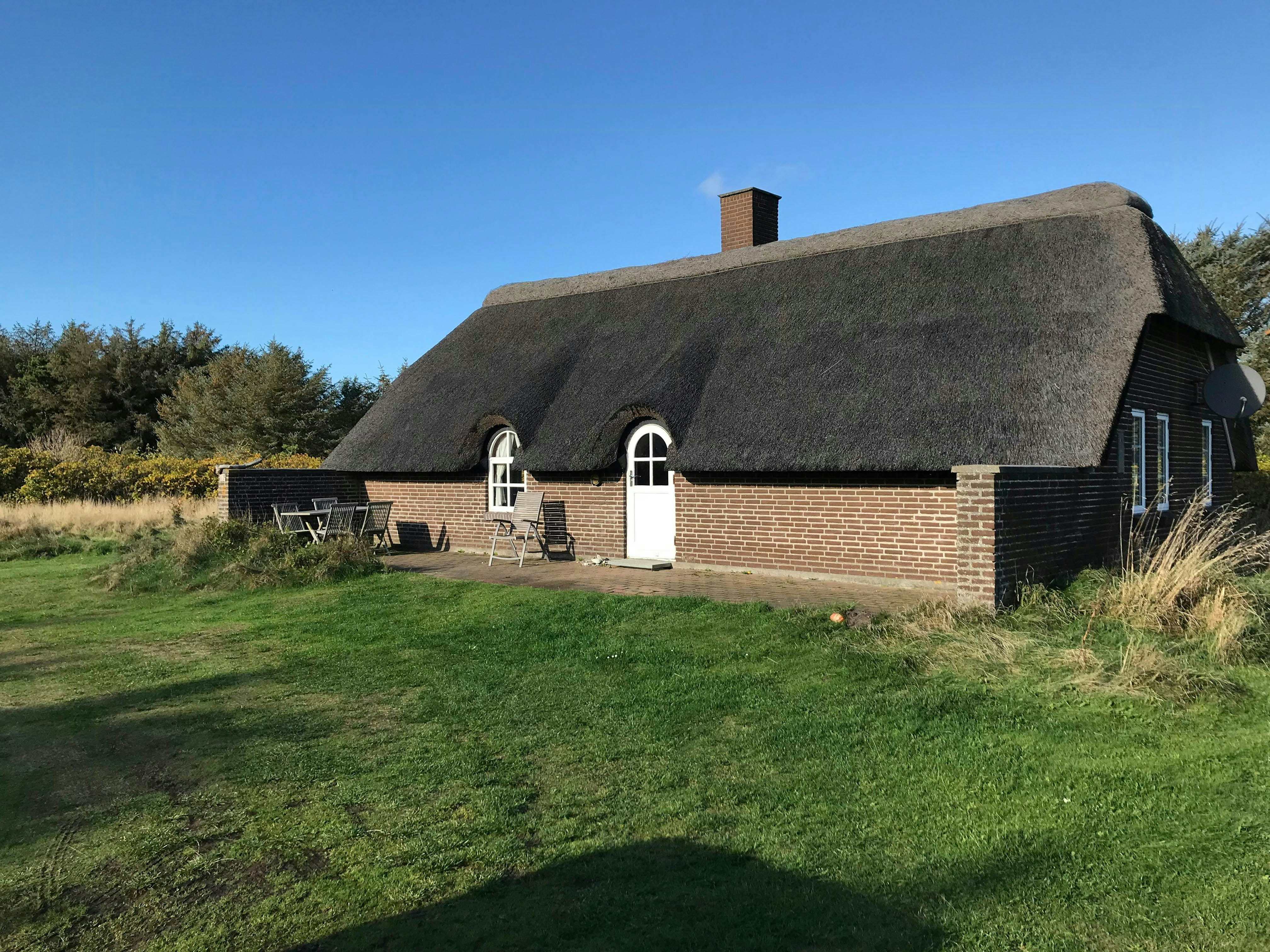 Casetta estiva con tetto di paglia vicino al Mare del Nord