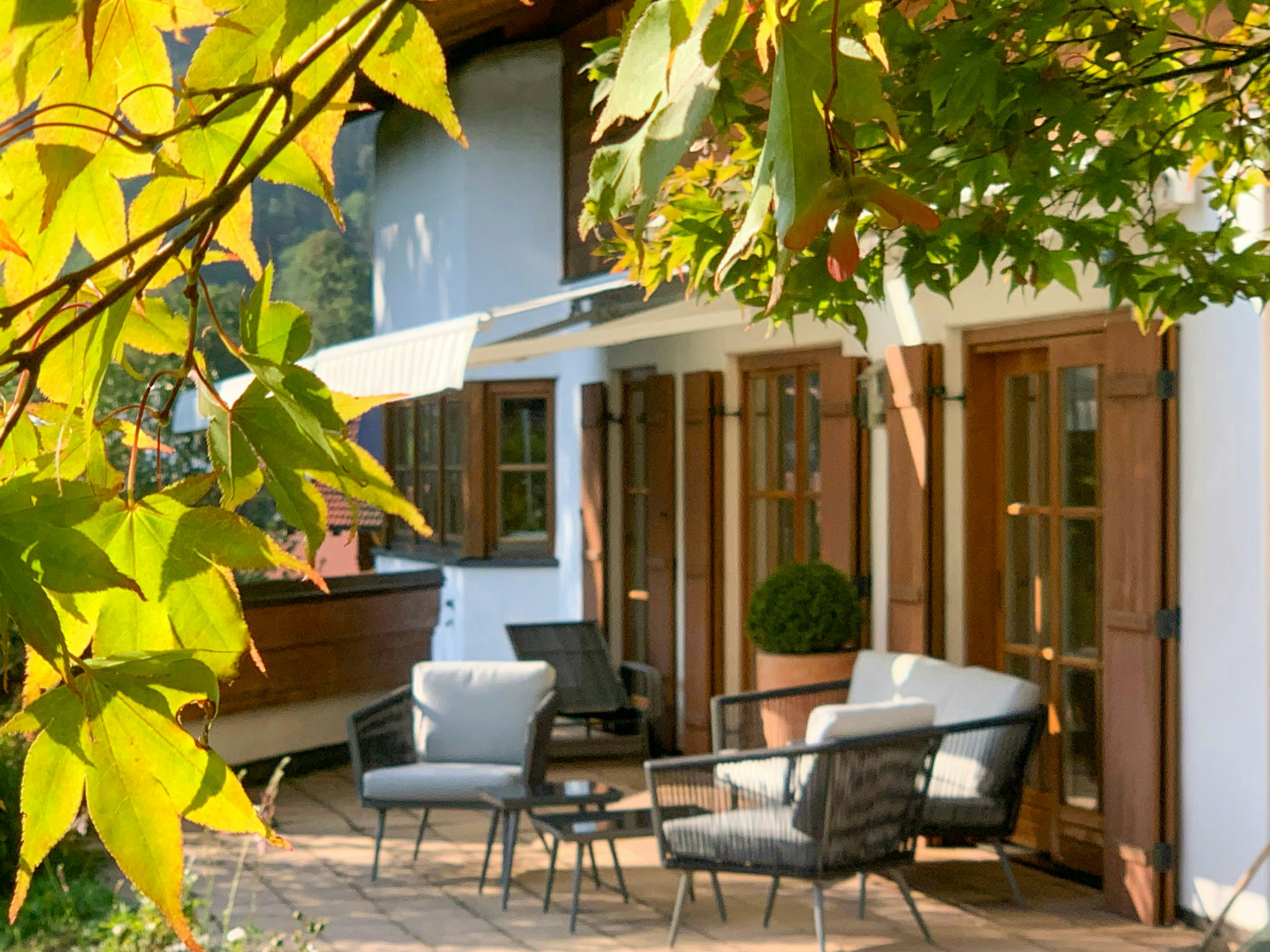 Il giardino di 2400 metri quadrati è un'oasi privata di tranquillità. L'area lounge con sedie a sdraio è il luogo perfetto per assaporare la vita all'aria aperta. Che si tratti di prendere il sole o di rilassarsi all'ombra degli alberi, ognuno troverà qui il suo posto personale. La sauna separata offre ulteriori possibilità di relax.