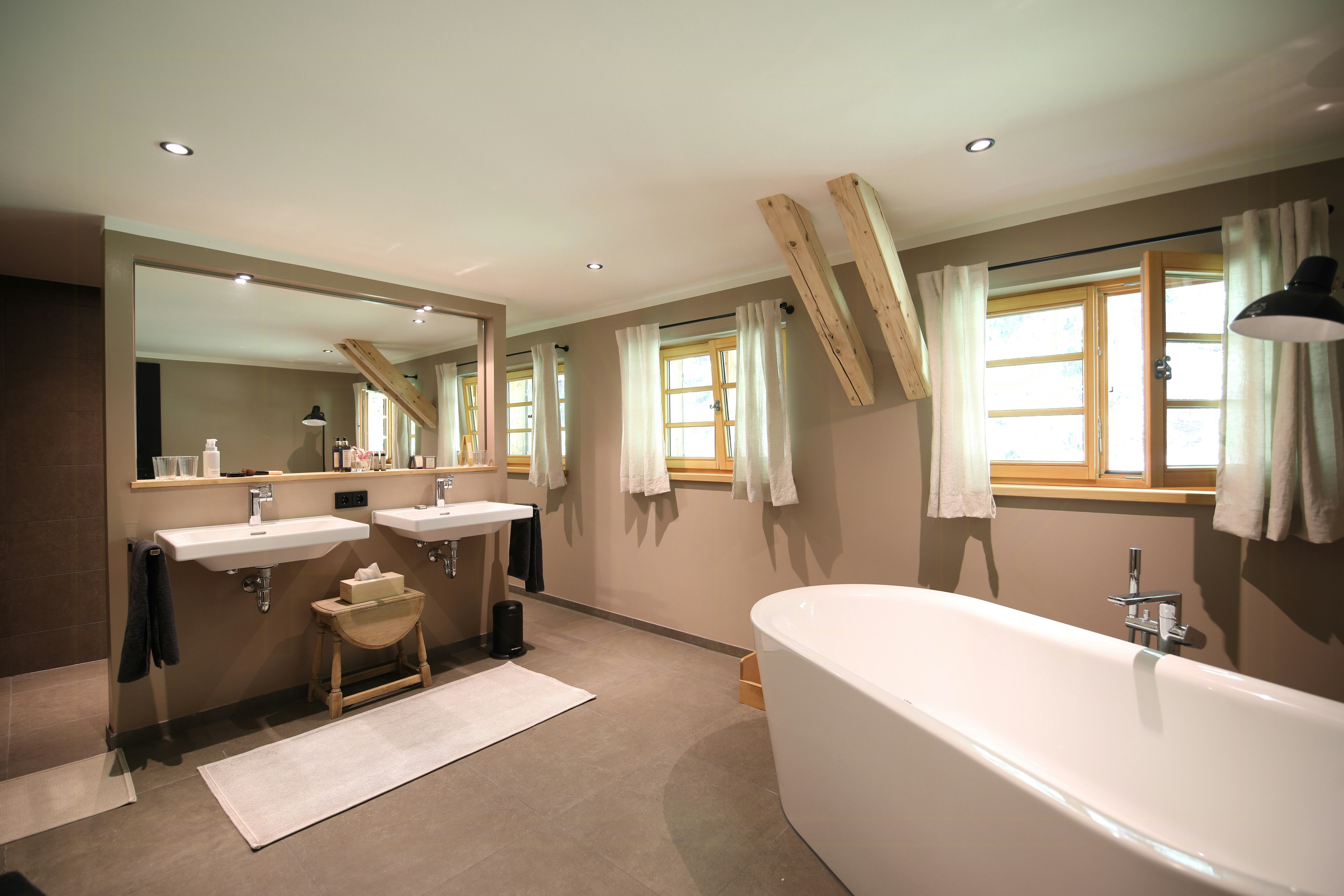 - La zona giorno con le storiche pareti in maglia di legno originali, come sono conosciute in Algovia, e il camino aperto