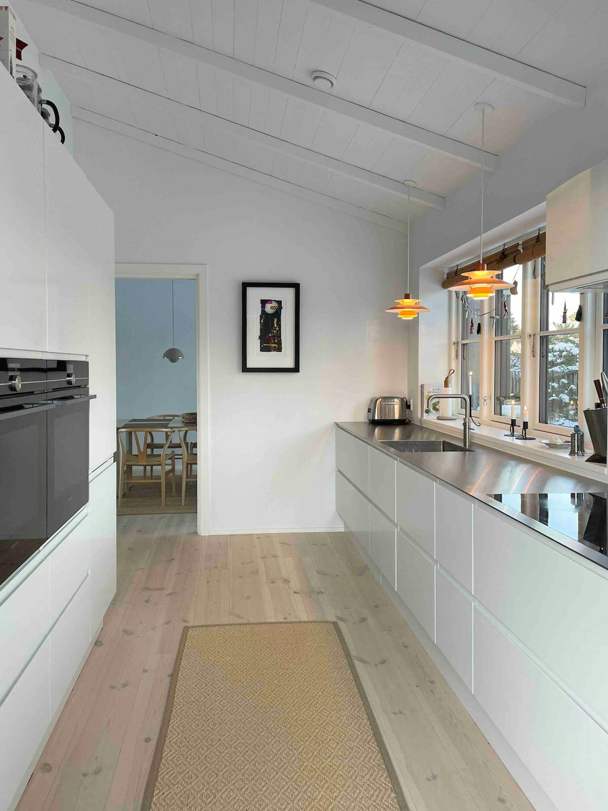 All'interno, sarete accolti da uno spazio aperto e luminoso con impiallacciature in pino e soffitti alti. Le tre camere da letto sono arredate con gusto con letti confortevoli e i mobili di design danese assicurano stile e comfort. Con un ingresso, una cucina, una sala da pranzo e un soggiorno, c'è molto spazio per tutta la famiglia.