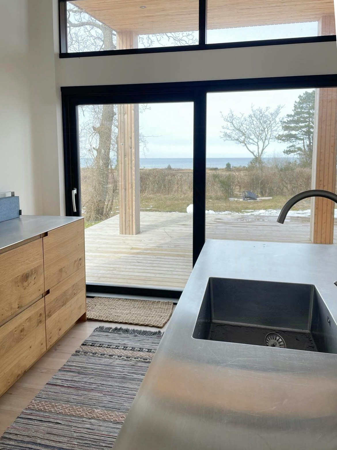 Quando il sole splende, aprite le porte e uscite per trascorrere la giornata sulla terrazza in legno. Qui, la facciata sfalsata permette di trovare riparo, ombra o un bel posto al sole a seconda delle necessità. Al calar delle tenebre, sorseggiate un bicchiere di vino al tramonto e sentite la calma che vi circonda mentre le stelle appaiono nel cielo sopra l'acqua.