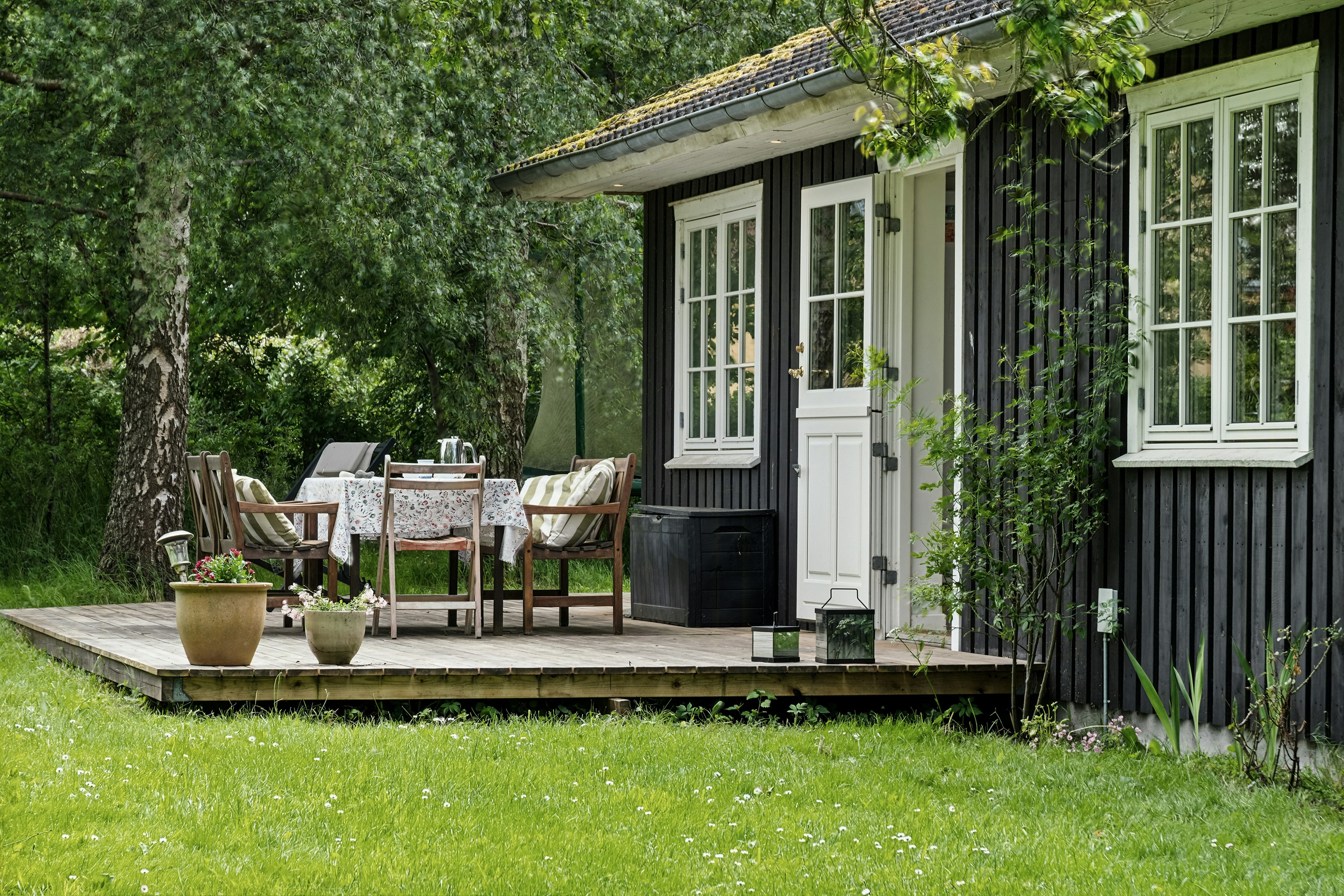 Il giardino è un sogno per bambini e adulti con il suo trampolino e lo spazio per le partite di calcio. Si possono quasi sentire le risate dei bambini e percepire l'atmosfera vivace mentre ci si rilassa sulla terrazza con vista sul verde.