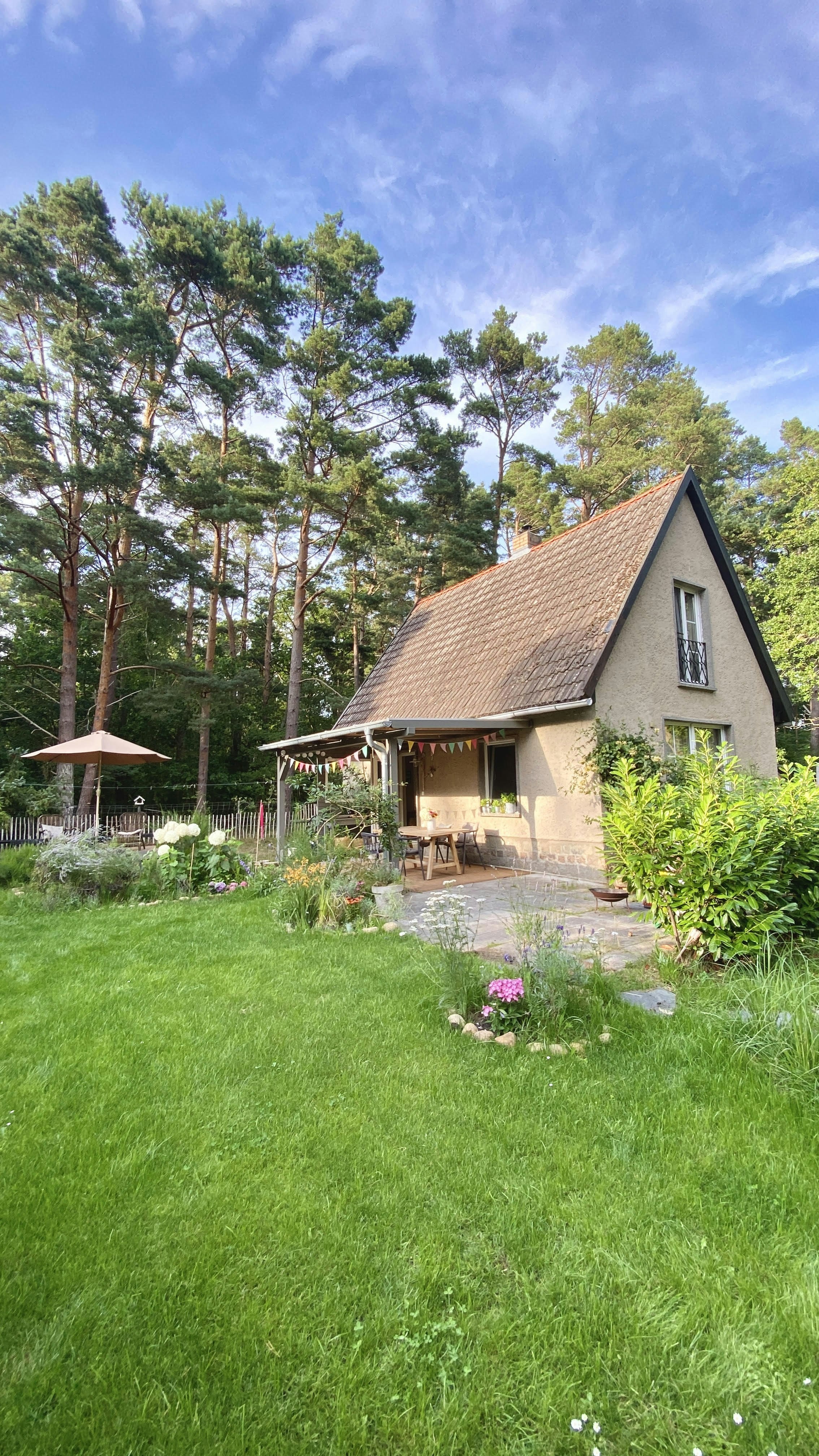 Direct achter de tuin begint de Rostocker Heide – een rustig kustbos met knoestige dennen, kleine open plekken en veel ruimte om diep adem te halen. Vlakbij ligt het beschermde Dierhäger Moor, een natuurgebied met wandelpaden. Leuke uitstapjes zijn het kunstenaarsdorp Ahrenshoop en de vuurtoren bij Darßer Ort.