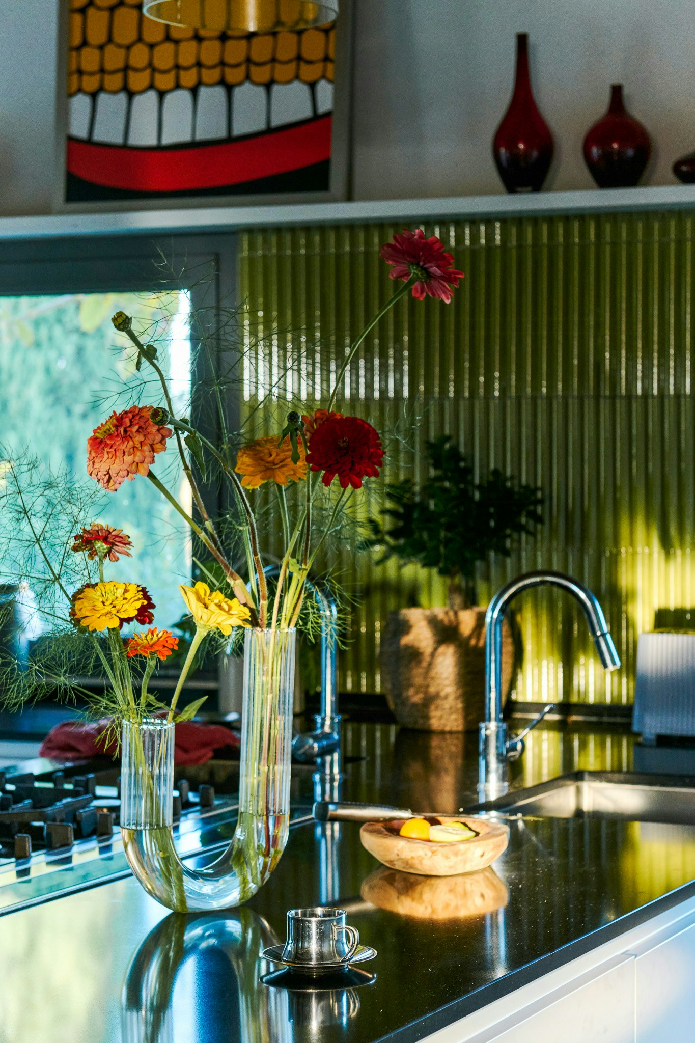 - Duik in het grote privézwembad met panoramisch uitzicht, omgeven door strobloemen.