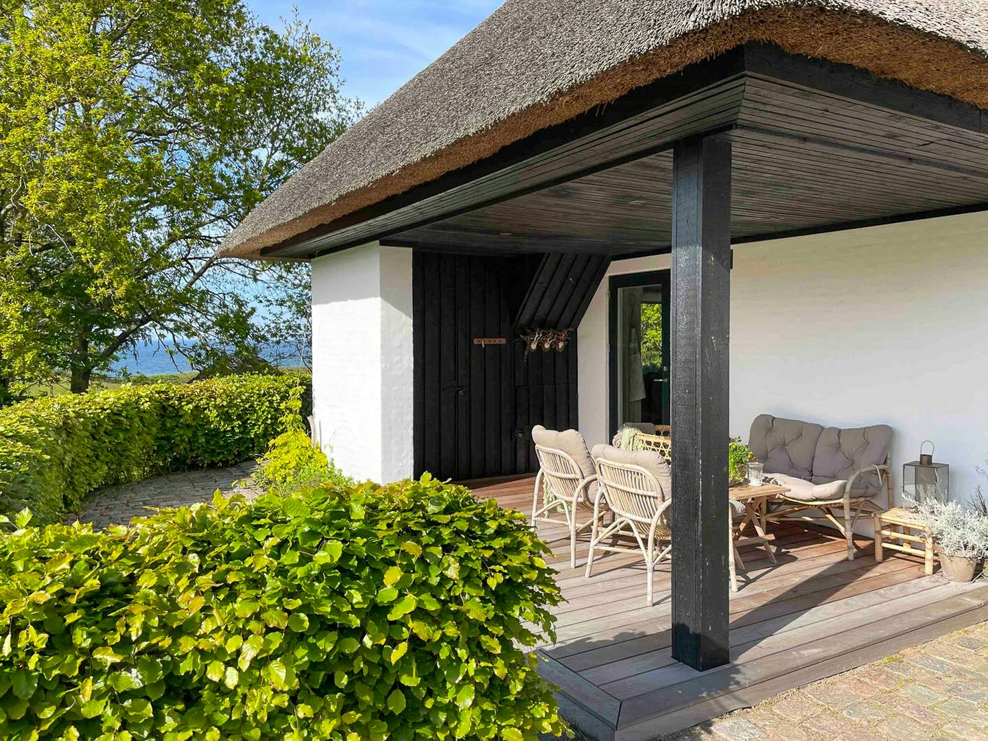 Een smaakvol ingericht vakantiehuis met oog voor detail. Met een prachtig uitzicht op zee en vlak bij het strand. Diverse gezellige zitjes rondom het huis.