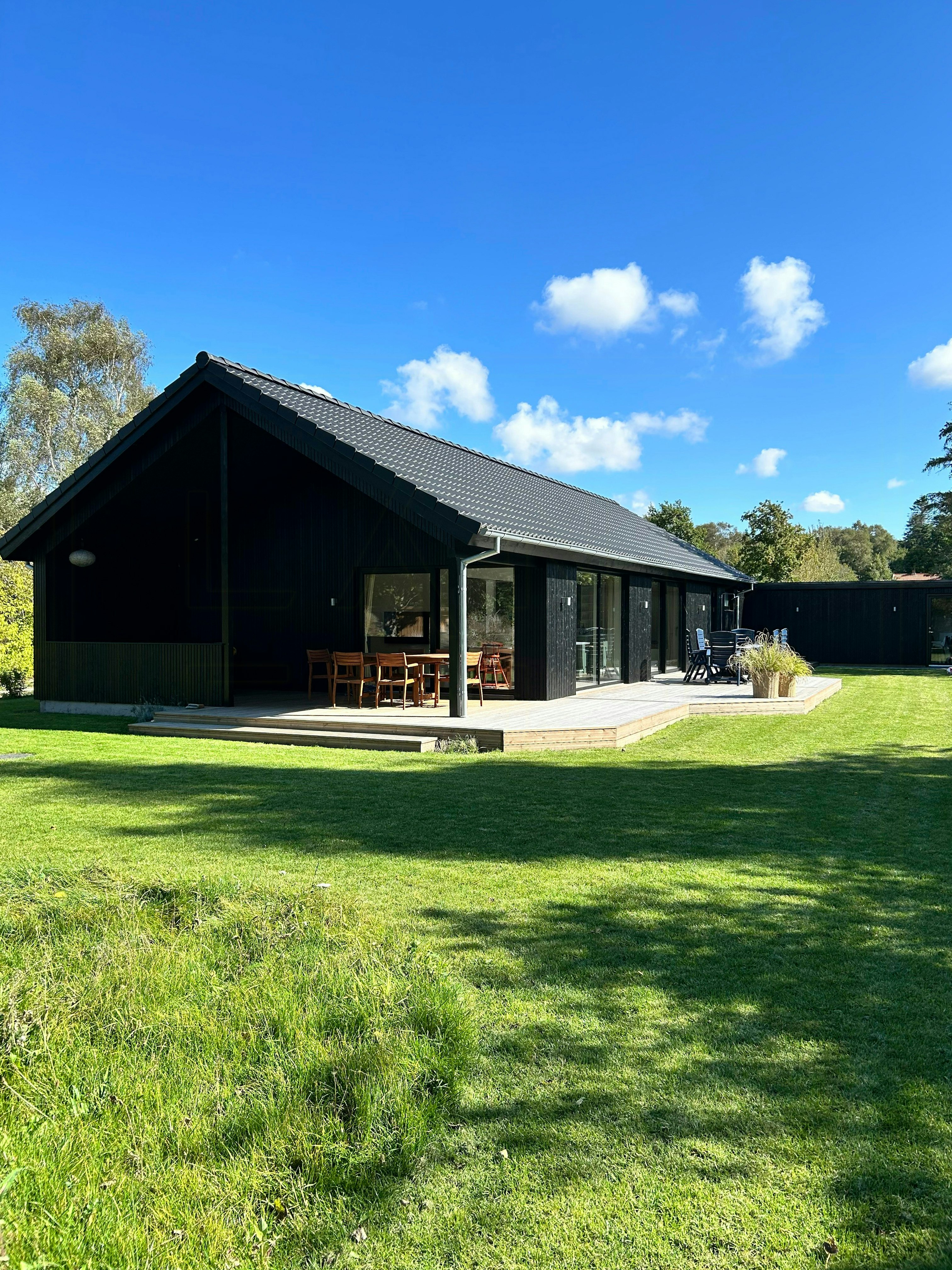Deilig sommerhus med mange hyggelige læsekroge at sidde i og et skønt stort udendørs-område med plads til spil og leg. Den overdækkede del af terassen var også skøn til den danske sommer.