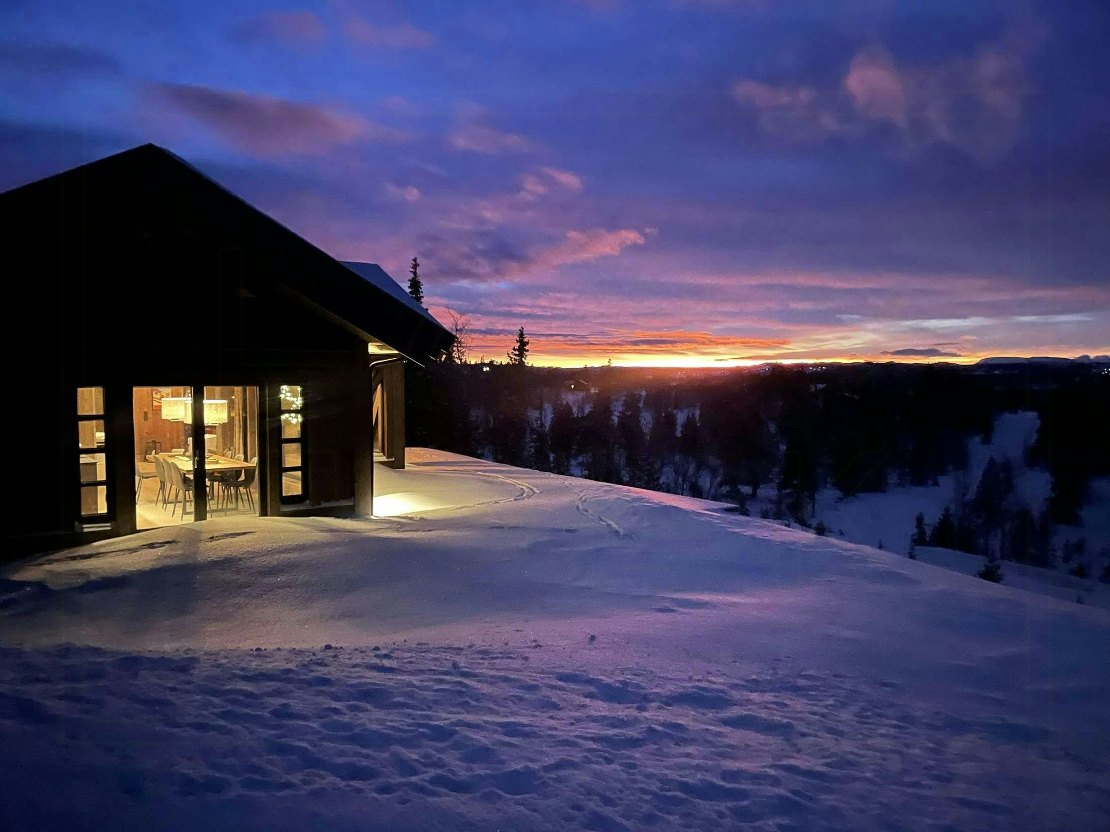 Forestill deg å sitte på terrassen utenfor hytta, med en kopp varm drikke i hånden, mens du ser solen gå ned bak fjellene. Det er slike øyeblikk som gjør ferien minneverdig.