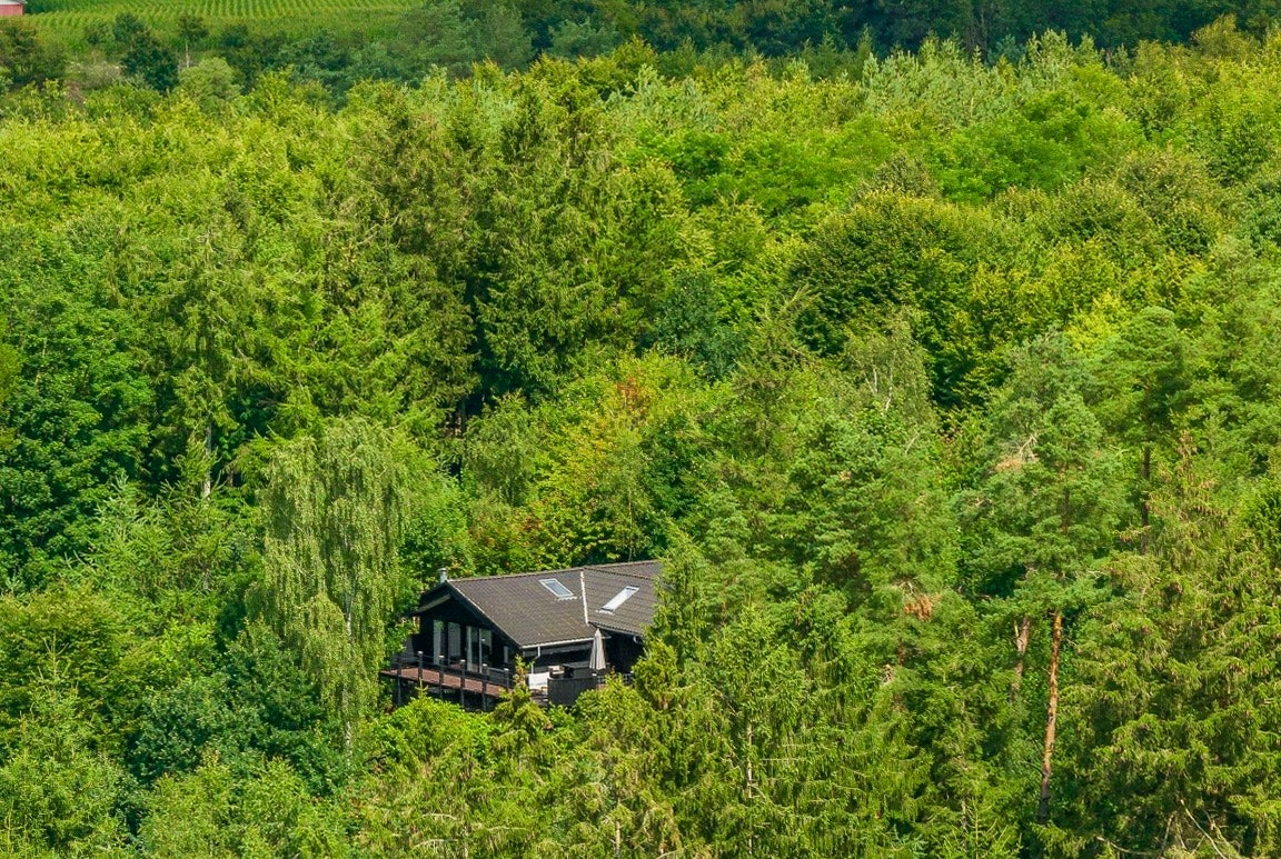 Tilbaketrukket feriehus midt i skogen