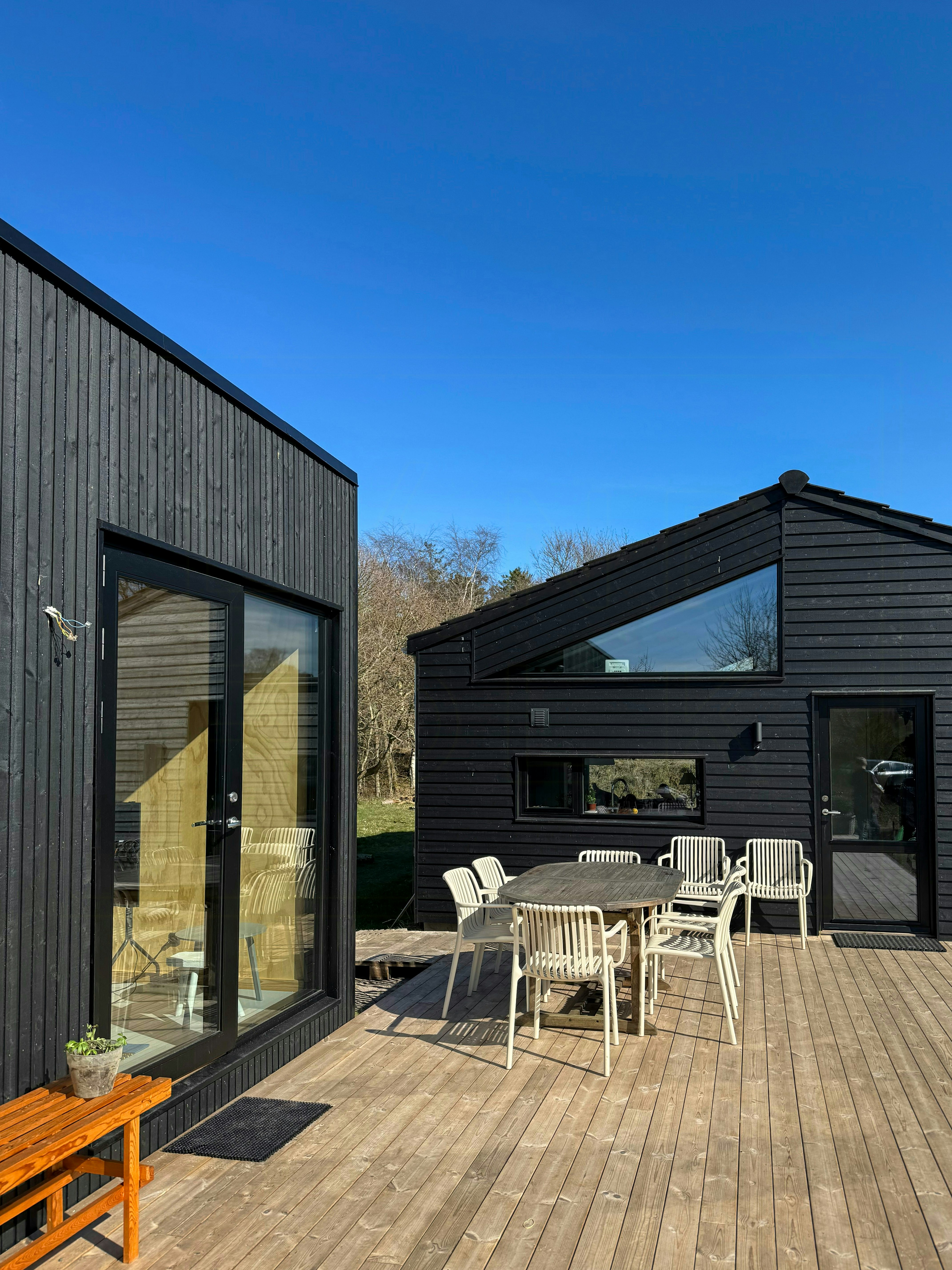 Vi ble begeistret over den ekstremt smakfulle utformingen og innredningen av huset, både innvendig og utvendig. Beliggenheten er perfekt: Stranden ligger ca. 100 meter unna, mens selve huset ligger bortgjemt i enden av en blindvei i en liten skog, slik at du kan nyte absolutt privatliv. Hele området er ganske tilbaketrukket og ikke overfylt i det hele tatt, men et anstendig supermarked ligger bare en 10-minutters sykkeltur unna i Tved.