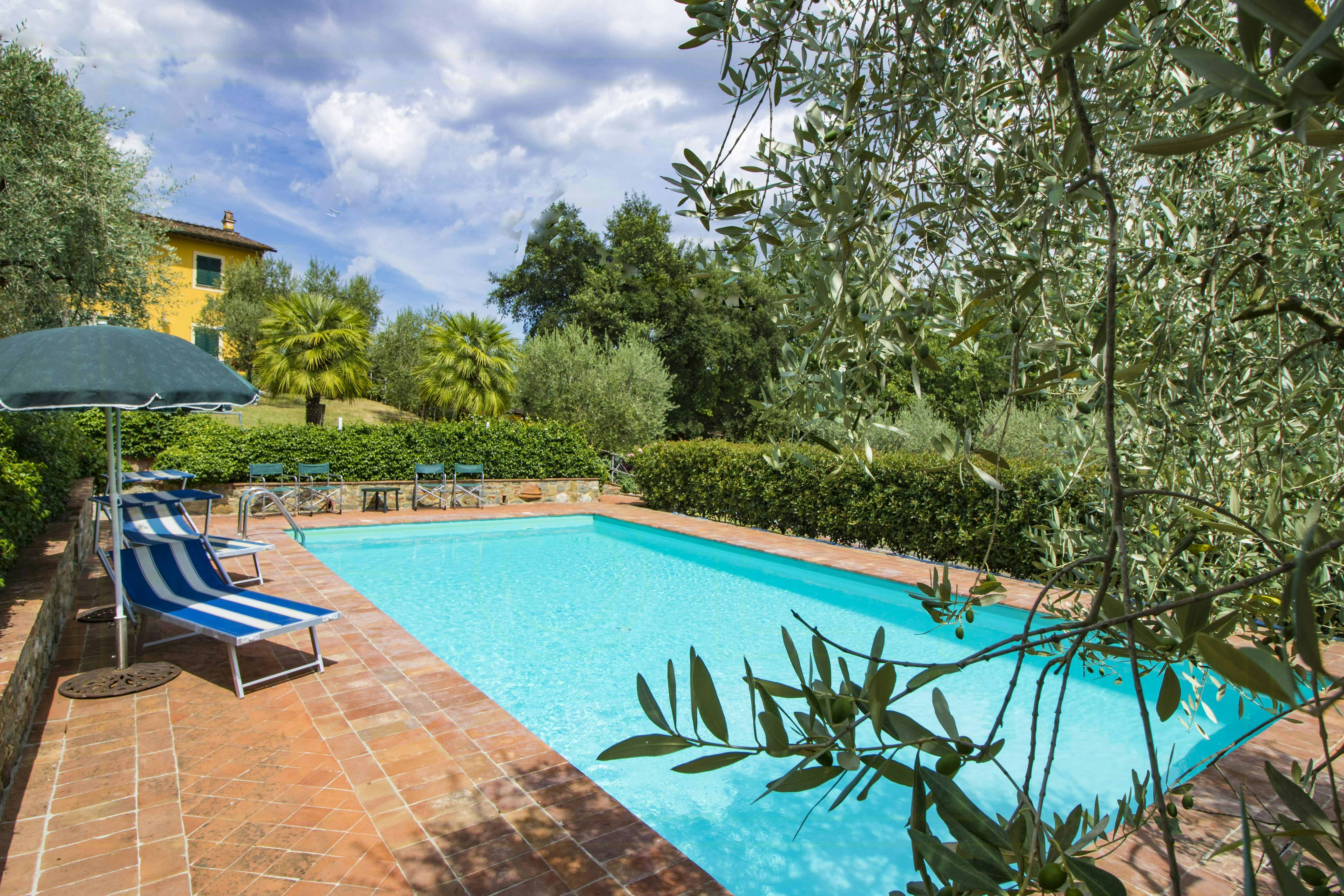 Italiensk stemning, dejligt hus, skøn terrasse med smukkeste udsigt, mange skønne spots med panoramaudsigt. Fantastisk smukt poolområde.