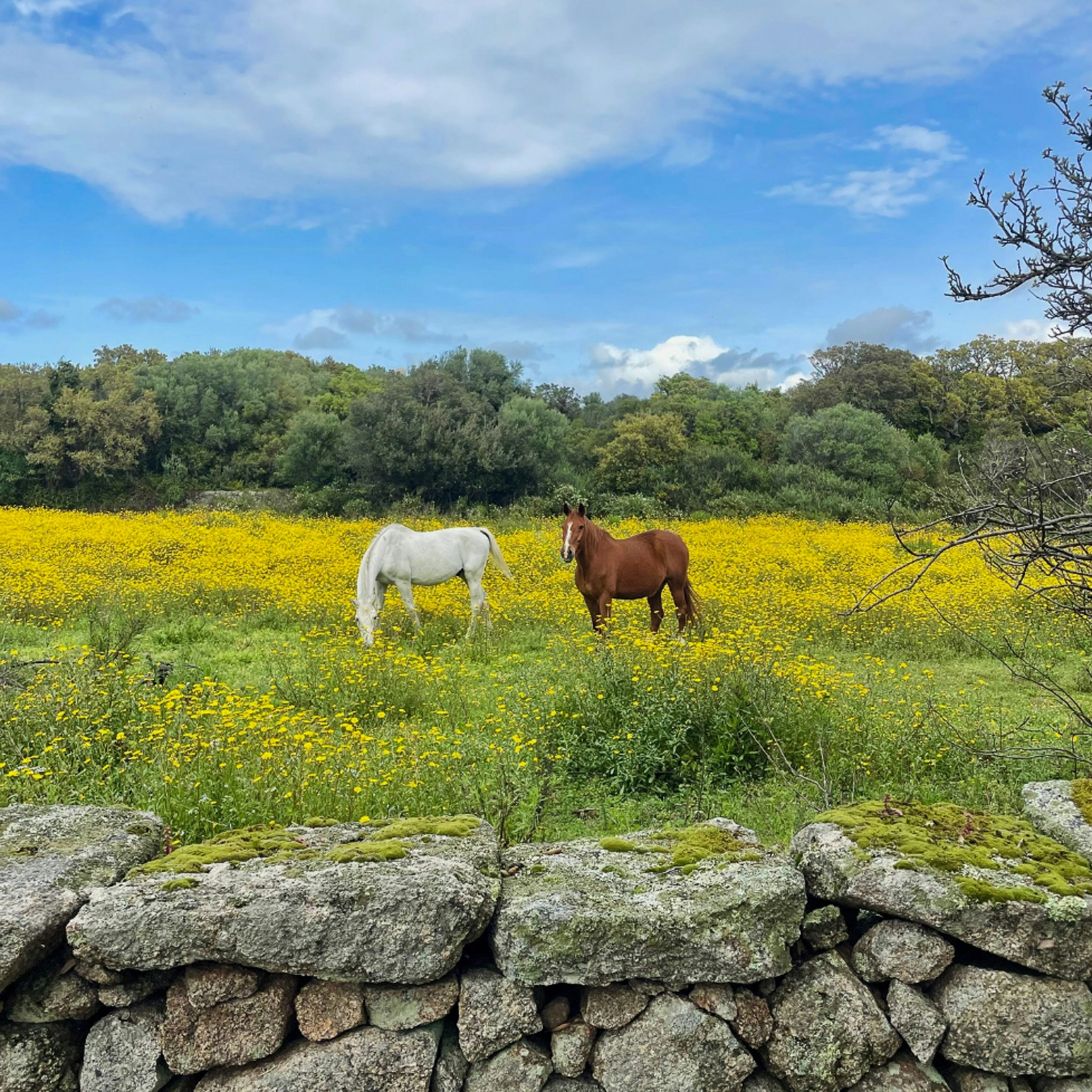 Gallurisk gård med hester i nærheten av Luogosanto
