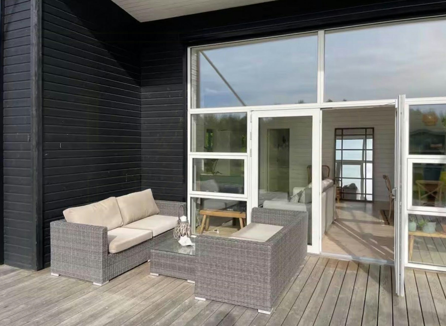 - Nyt solnedgangen fra den sørvendte terrassen med utsikt over åkrene
